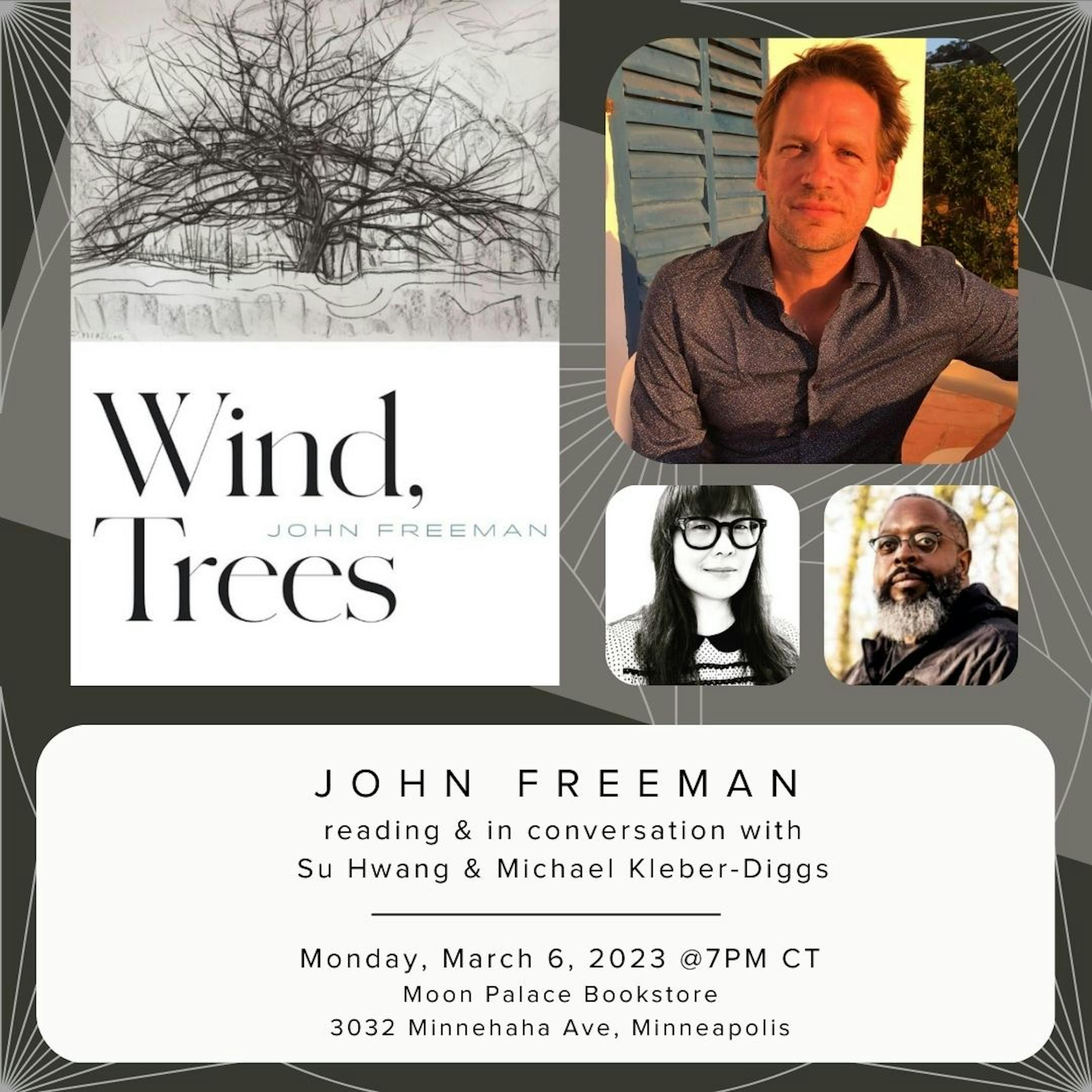 Moon Palace Books in Minneapolis will host John Freeman this week. Freeman defies easy description — he's a poet, yes, and he will be discussing his new collection "Wind, Trees," just out from Copper Canyon Press. But he's also a book critic (he used to review for these pages), an anthologist, an essayist, an editor at Alfred A. Knopf, and I'm probably leaving out a few things.