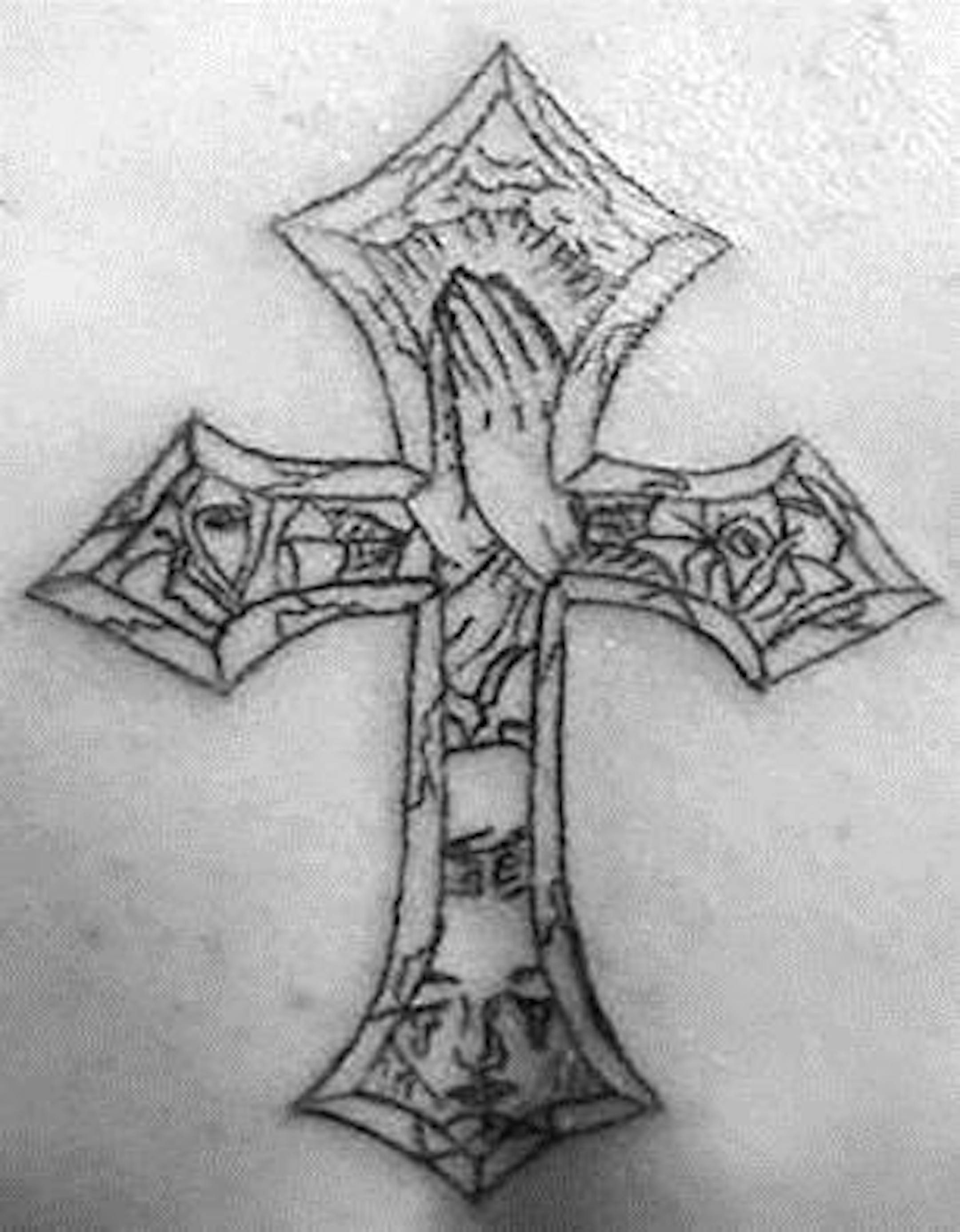 Photo: A cross tattoo like this one was found on the arm of a homicide victim in south Minneapolis Aug. 7, 2014. Source: MPD.