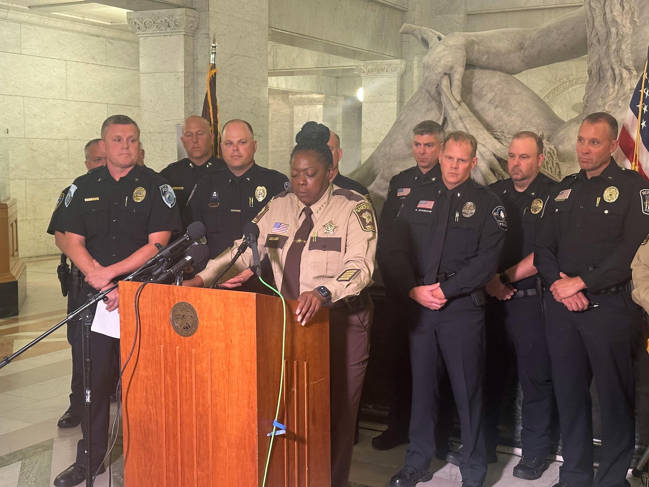 Roughly 20 law enforcement leaders and police chiefs joined Boerboom and Witt at the news conference in Minneapolis City Hall to show their disapproval of the policy.