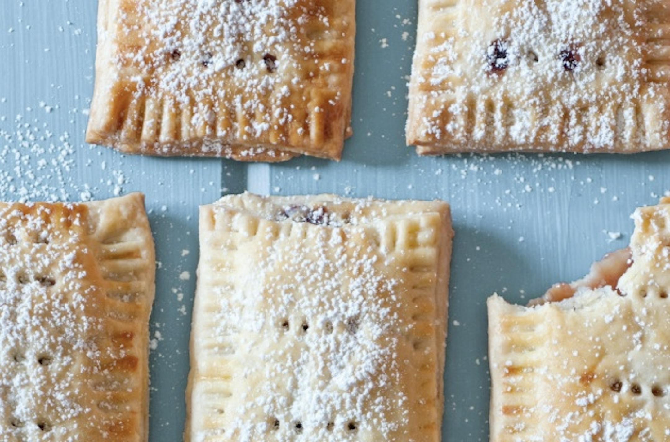 To prepare pastries: When ready to roll dough, preheat oven to 375 degrees and line a baking sheet with parchment paper. Lightly flour a work surface and a rolling pin. Remove dough from refrigerator and let rest on counter for 15 minutes. Unwrap a disc and roll into a 9x12-inch rectangle, cutting away any errant edges with a sharp knife. Cut rectangle into 6 smaller rectangles. Gently separate rectangles from work surface and lay them on prepared baking sheet with at least 2 inches between them. Using a pastry brush, paint each rectangle with beaten egg. Scoop 1 tablespoon of filling into each rectangle in a thin line down the center. Roll out second disc of pie pastry, repeating steps to create six rectangles. Lay new batch of rectangles over filled rectangles and seal by pressing a fork around the perimeter of each rectangle. Using a pastry brush, paint tops of each pastry with egg wash and poke several times with a fork. Bake until golden, about 20 to 25 minutes, rotating baking sheet once during baking. Remove from oven, cool for 2 minutes then transfer to a wire rack to cool completely. Dust with powdered sugar (or ice with frosting, see recipe, below) before serving.