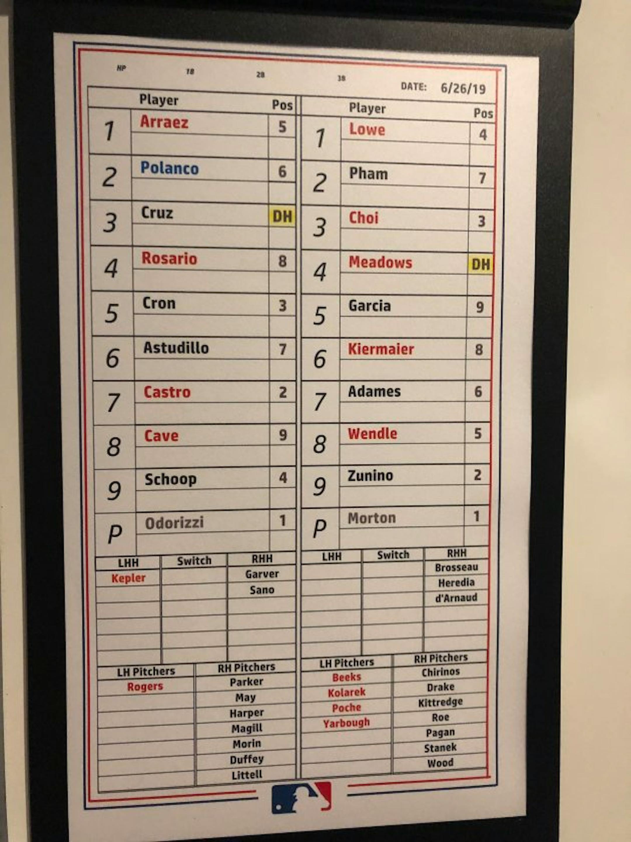 With Max Kepler (elbow contusion) and Byron Buxton (wrist) out, the Twins will have an interesting outfield. Willians Astudillo is playing left, with Eddie Rosario moving to center and Jake Cave in right.