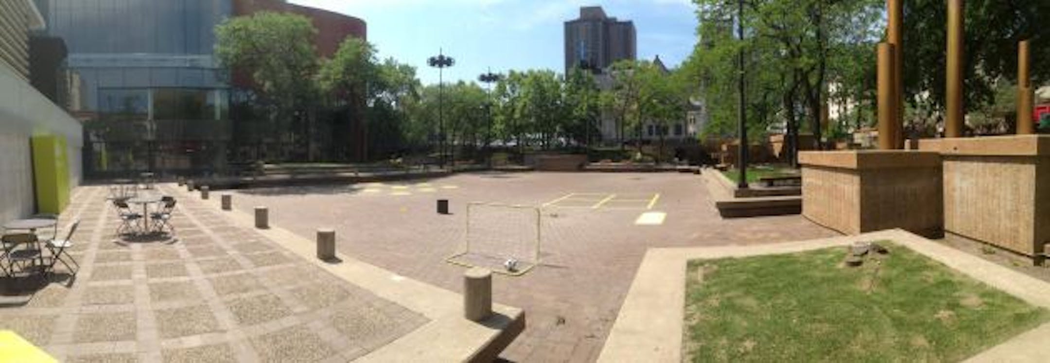 "I think that there are a lot of people in the community that think the current situation is totally unacceptable and we really need a new vision," Goodman said at a news conference Wednesday in the plaza. "A vision that makes this plaza more green, a vision that makes it more accessible, and brings it back to the days of 1974, when people really saw this plaza as our town square."