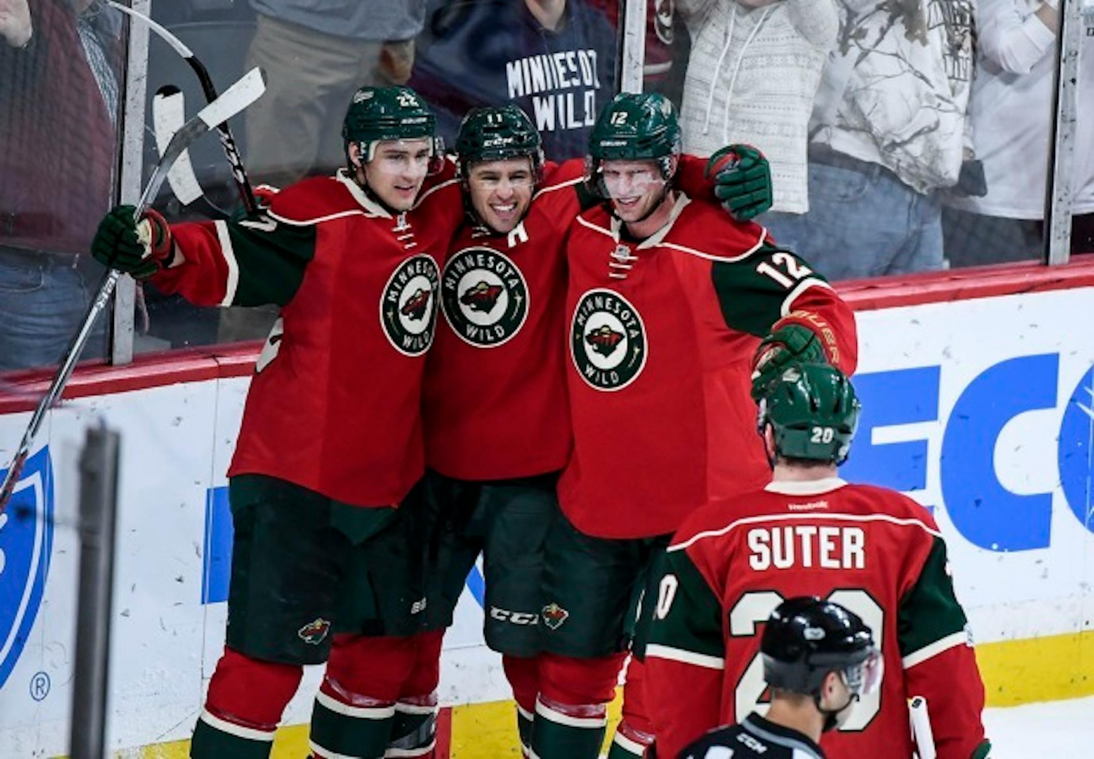 The Nino Niederreiter-Eric Staal-Zach Parise line combined for three goals and five assists (Niederreiter two and one and Parise one and two). Jordan Schroeder also scored and the Wild won its 27th home game, second-most in history. With 102 points, the Wild can break its franchise-record for best season (104 points) if it goes 1-0-1 or 2-0 in its final two games at Colorado and at Arizona.