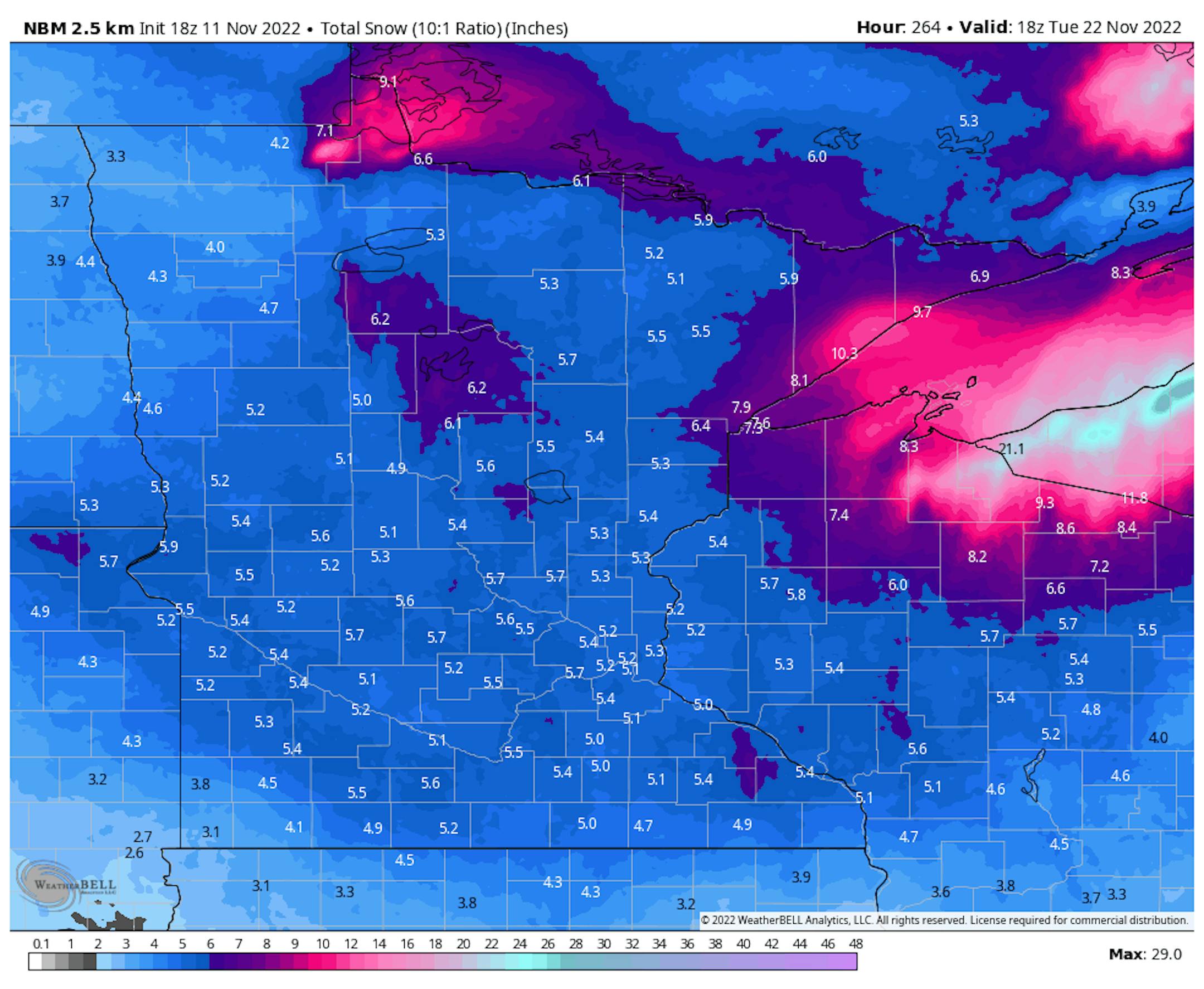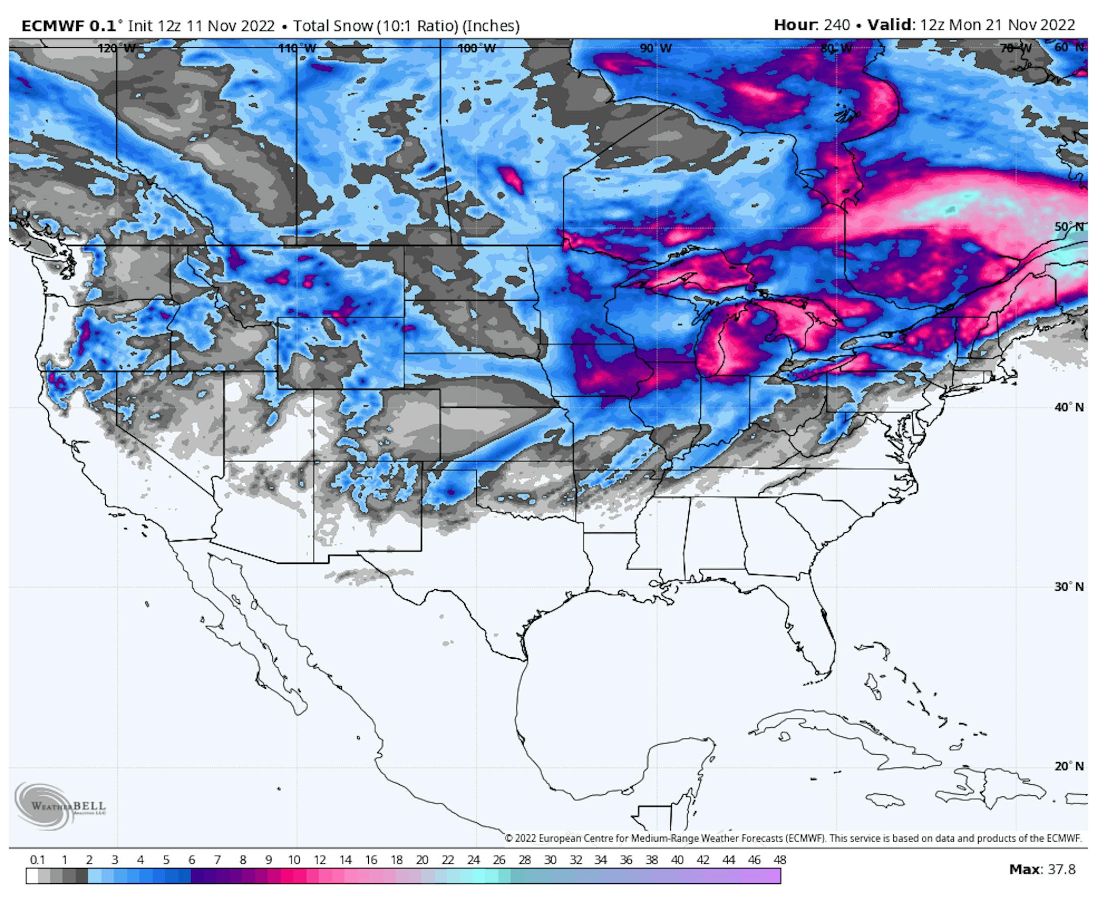 Here is just one models output for snowfall next week. If everything comes together, there could be some plowable amounts close to home, but it's too early to tell. Stay tuned...