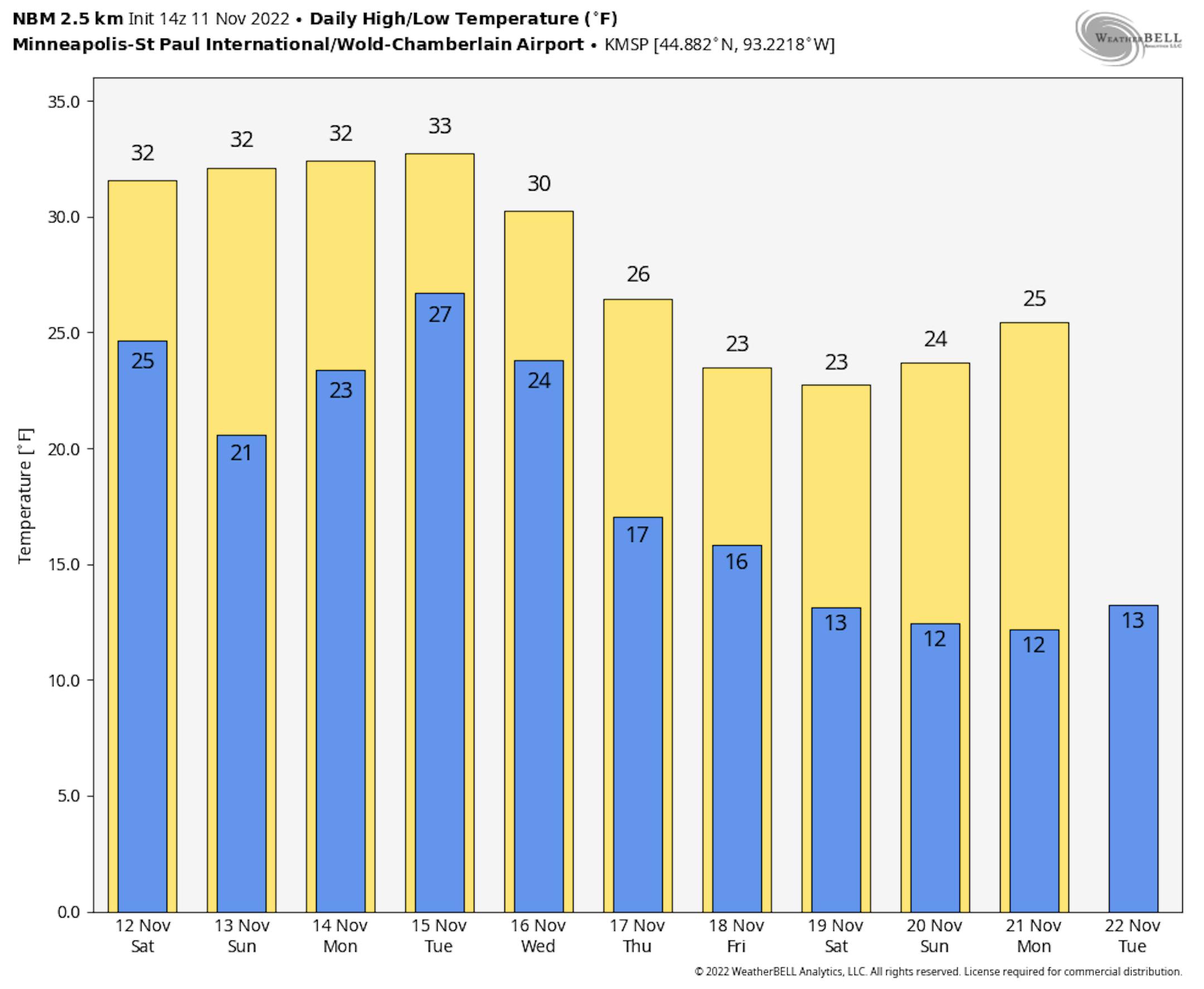 Saturday will be a very chilly day across the region with highs only warming to 30F in the Twin Cities. Note that this will be well below average for mid November.