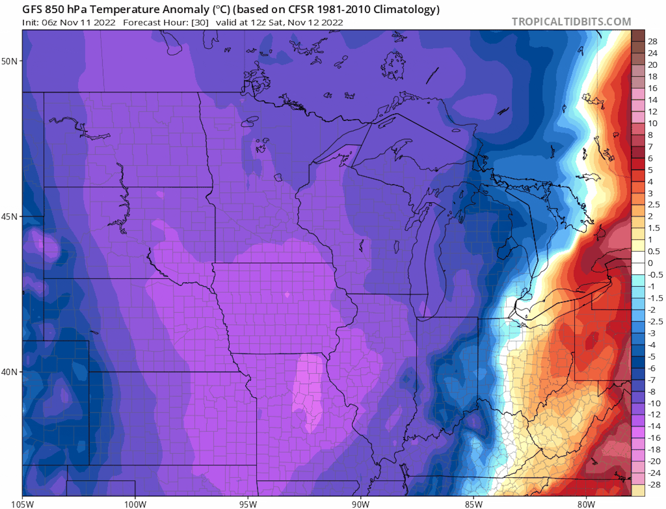 Here's the weather outlook for Saturday, which shows temps running well below average for mid November. Readings will only warm into the 20s and 30s across the state, which will be nearly -10F to -20F below average. Highs in North Dakota will only warm into the teens thanks to some fresh snow across the state.