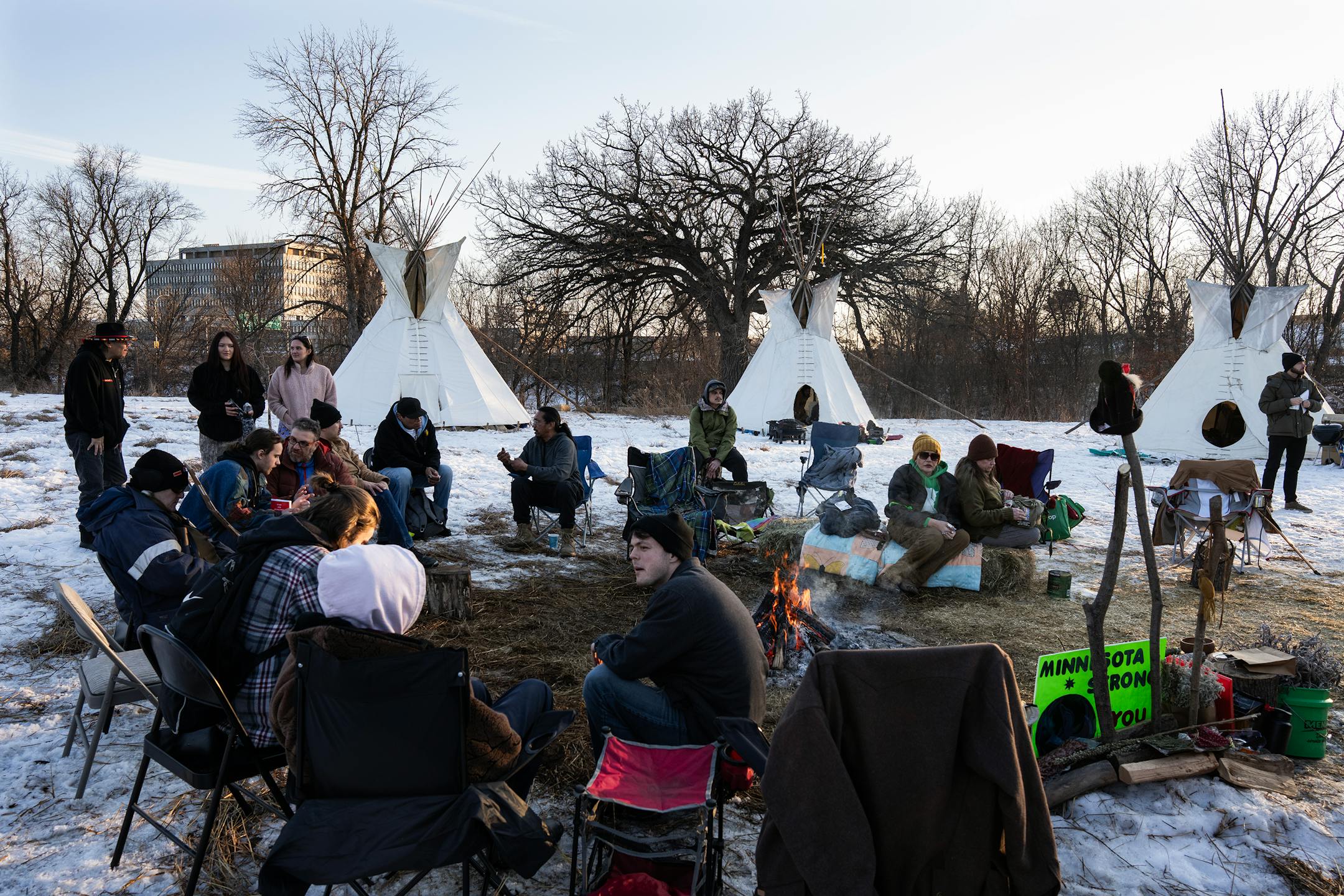 The camp, which was established Monday and has no plans to disappear as the deportation operation winds down, was created to reassert the area as Native land while also providing a space for healing, camaraderie, comfort and togetherness, said Wasuduta, a member of the Dakota tribe and leader of the campsite.