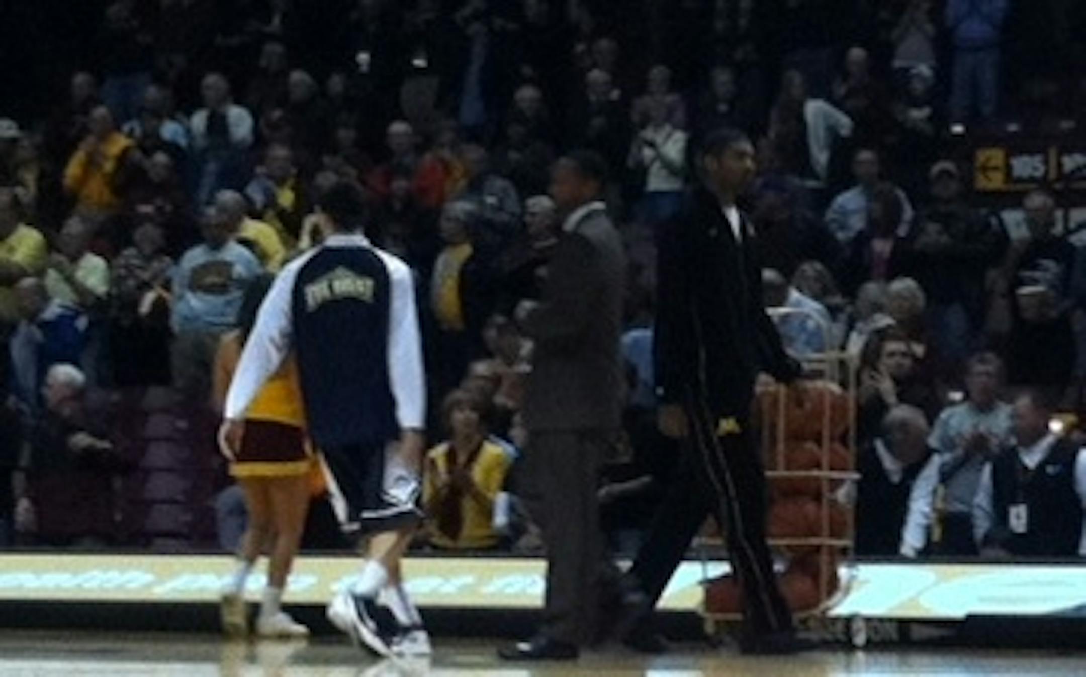 As Amelia Rayno reported earlier, it appears as though Ralph Sampson III is going to miss tonight's Gophers game vs. Mount St. Mary's. He never shed his warm-up gear as the Gophers shot around; instead, Sampson -- who turned his ankle in Thursday's victory over Fairfield -- stood on the sideline next to fellow injured big man Mo Walker. Sampson has been replaced in the starting lineup by redshirt freshman Elliott Eliason.