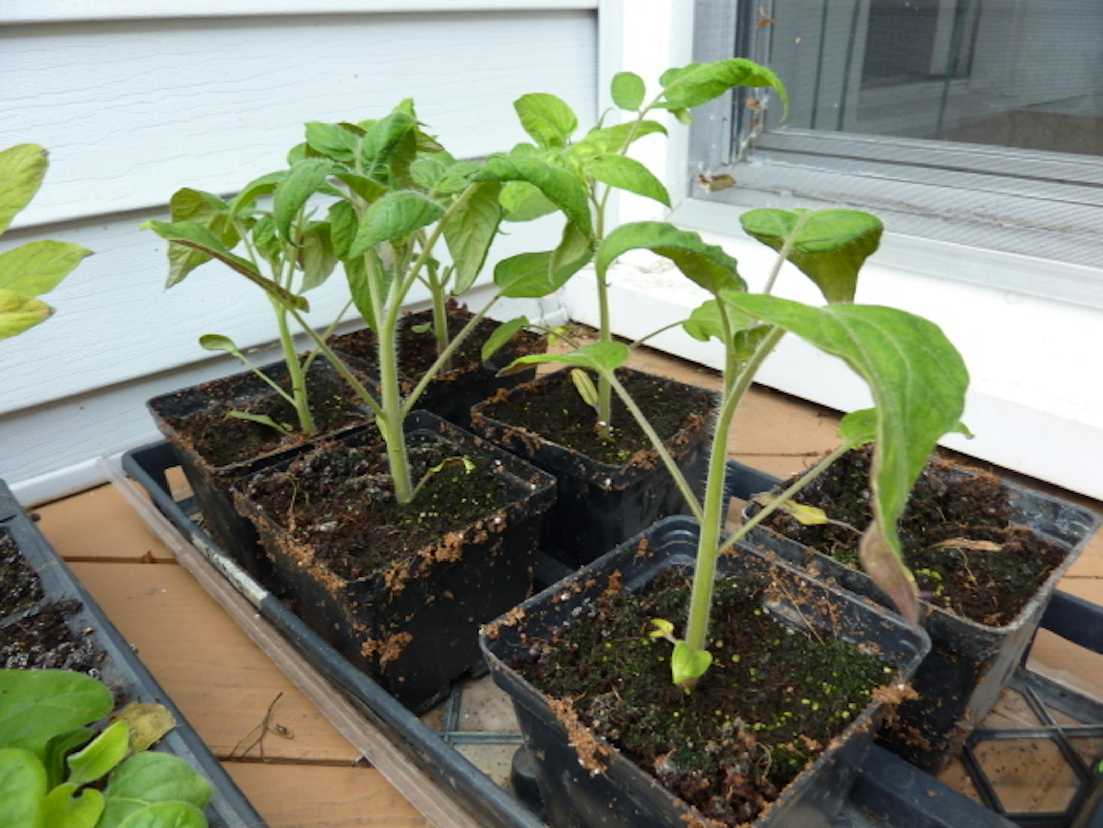 The 2-year-old Brandywine seeds germinated pretty well, I just ran into a little overwatering problem on one flat so I won't have extra tomatoes to swap on Saturday. BUT, I will have plenty of other items.
