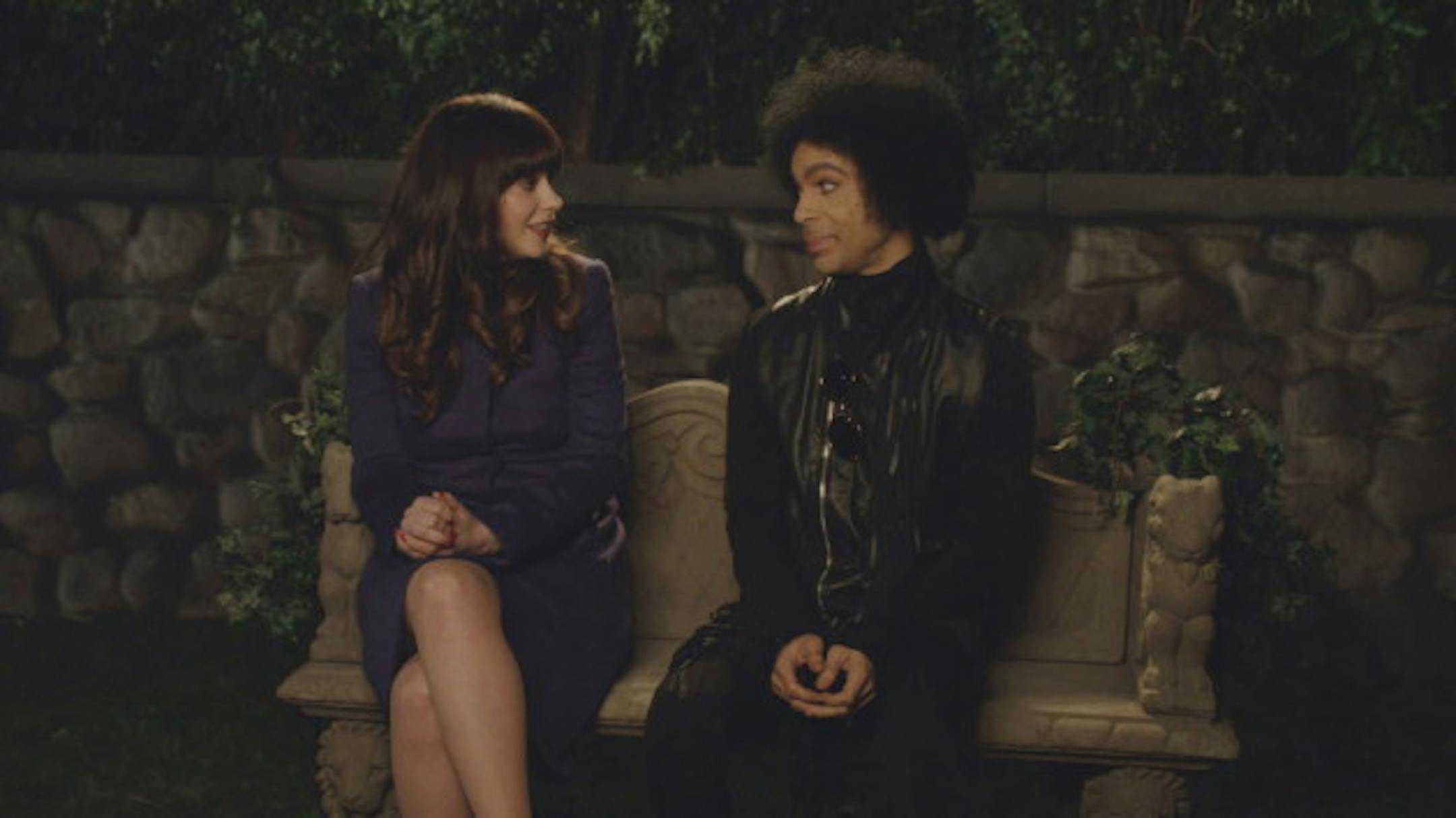 Jess (Zooey Deschanel) and Cece (Hannah Simone) almost get run over by a black SUV (with MN plates) in L.A. The driver worked for Prince and she felt so bad that she invited the two women to a party at Prince's L.A. house.