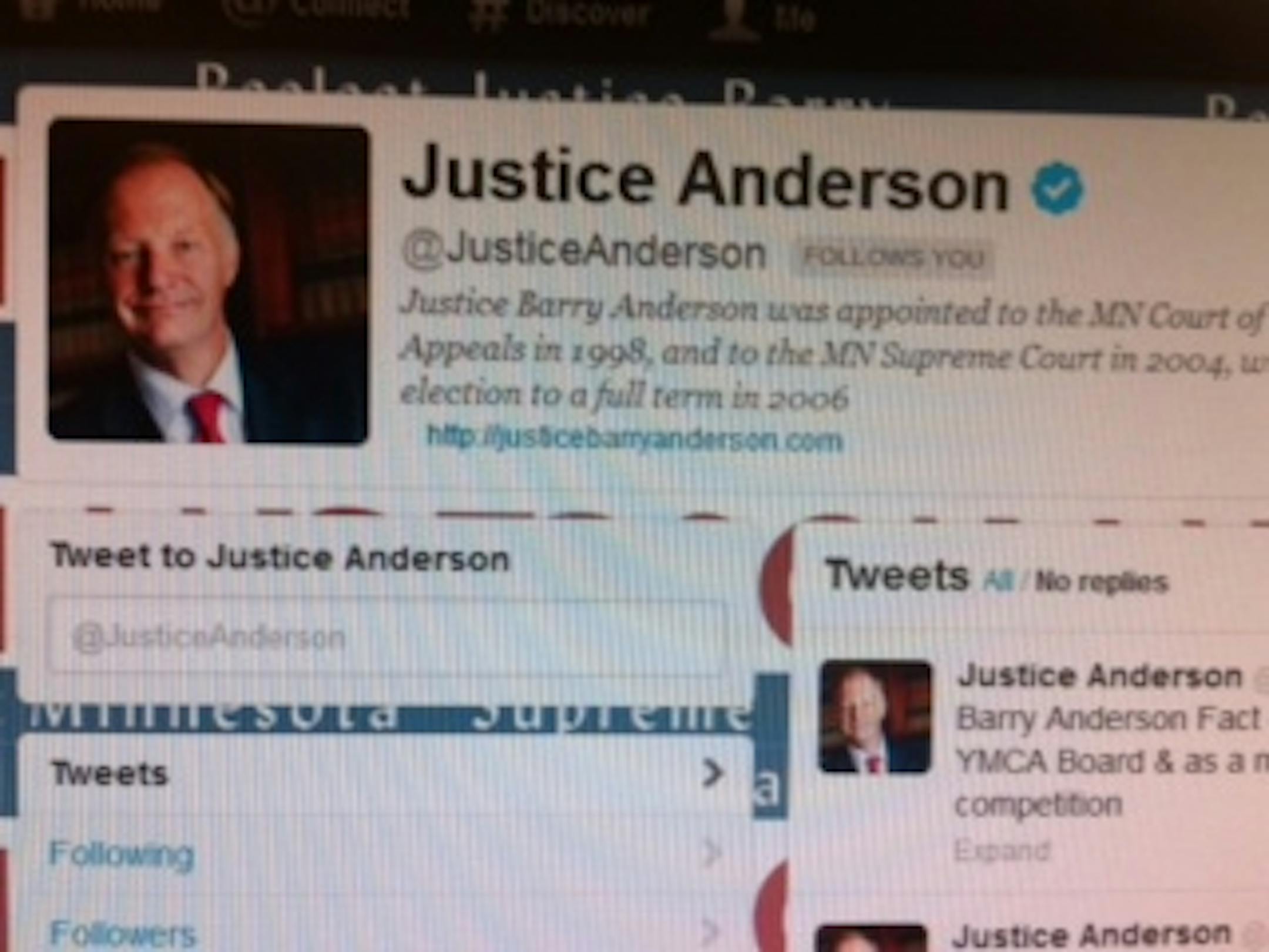 Supreme Court Justice G. Barry Anderson may be making history, 140-characters at a time.