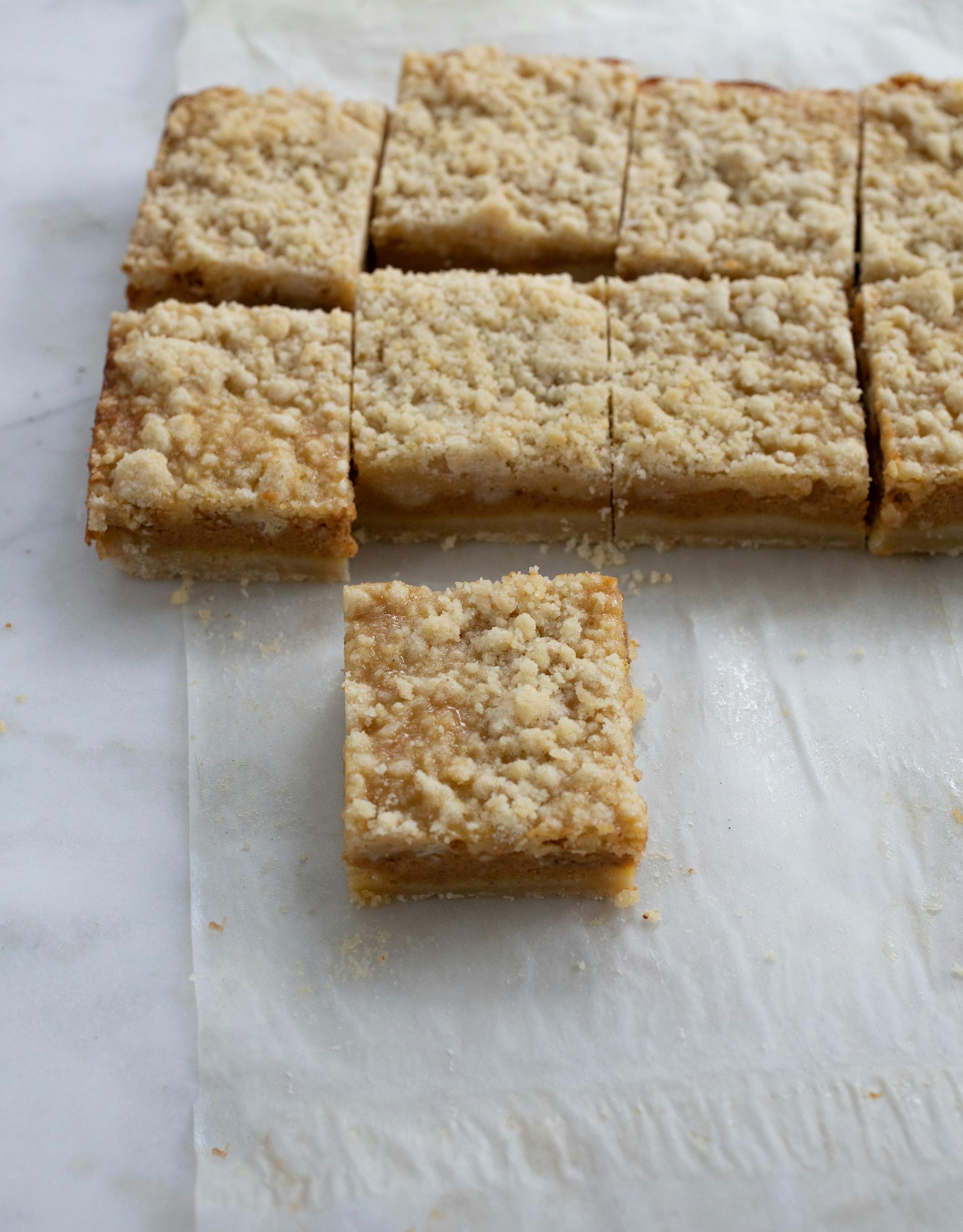 Since I had already made a classic pumpkin pie on the real Thanksgiving, I made these pumpkin streusel bars for our follow-up dessert day. They are a nice, casual addition to any holiday table: Their brown butter crust and streusel are all made in one step, and there is a creamy traditional pumpkin filling to please all the purists. They also are made in a 9-by-13 pan and can serve up to 24, which comes in handy if you are feeding a large crowd.