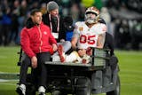 The 49ers could head to Seattle without star tight end George Kittle, who was carted off the field with a right Achilles tendon injury late in the first half.
