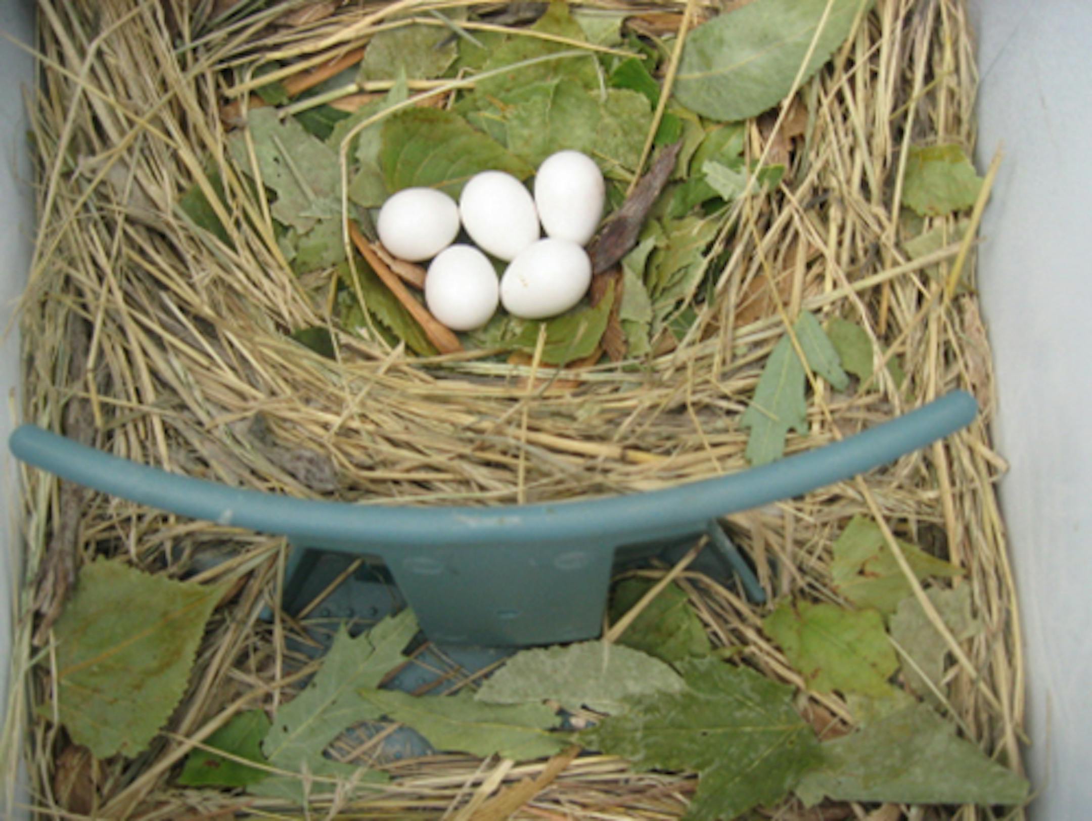 Here is the nest of a pair of Purple Martins. The first photo shows the eggs during incubation, each egg just under an inch in length. The second shows the baby martins the day they hatched. I've darkened the image around the birds so they might be more easily seen. Also, the egg in the nest with the birds has been placed there with Photoshop software, to show sizes side by side. The young birds are naked, blind, and helpless, in addition to being very small and, well, ugly. Their eyes open a few days after hatching. They will be mature enough to leave the nest about four weeks after hatching. Lisa Rock, a friend who tends the martins at her Ohio home, and who provided the photos, says the only problem she sees at the moment is a lone male House Sparrow determined to compete for the nesting sites, occupied or not. Sparrows will puncture eggs and kill the young of other cavity-nesting species. (House Sparrows are non-native, invasive species, and, in my opinion should be treated like any other invasive.)