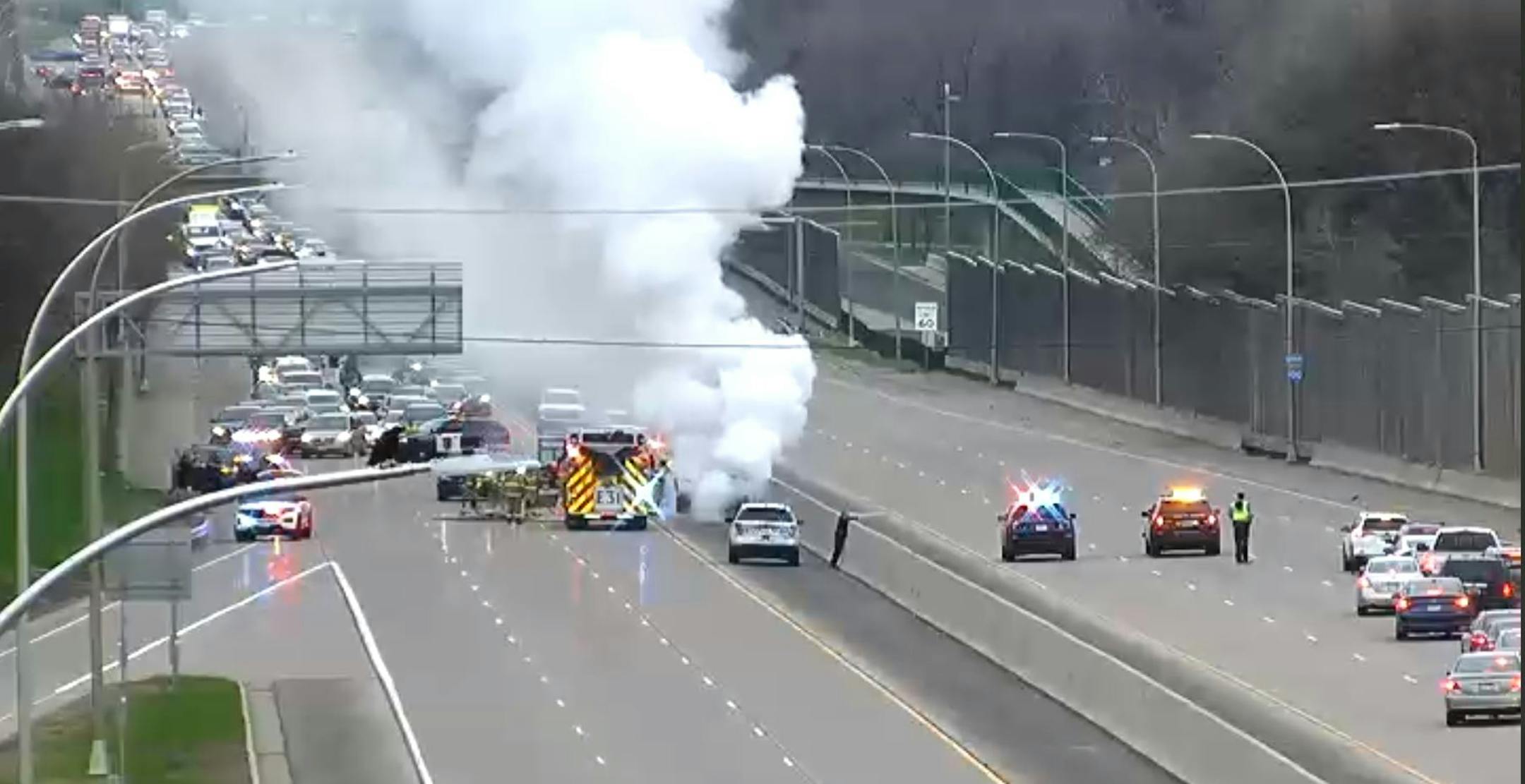 Traffic came to a standstill and was backed up for nearly an hour as authorities from multiple agencies descended on the scene, Minnesota Department of Transportation traffic management cameras showed.
