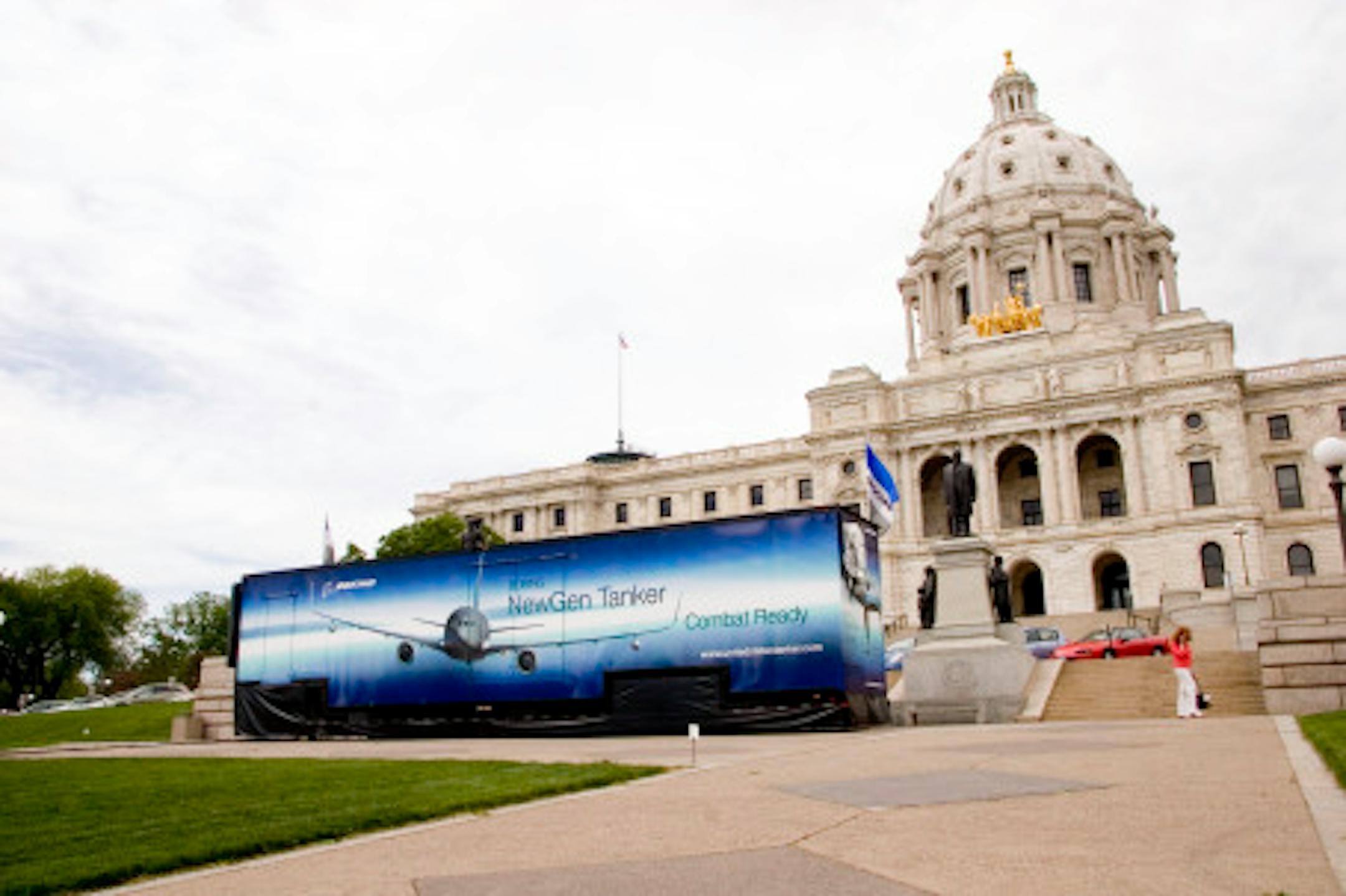 St. Louis-based Boeing is in the middle of deep competition with a French company for a $35 billion contract for the Air Force aerial tanker. The company is pushing the idea of American jobs and money into the American economy with a trailer full of simulated equipment.