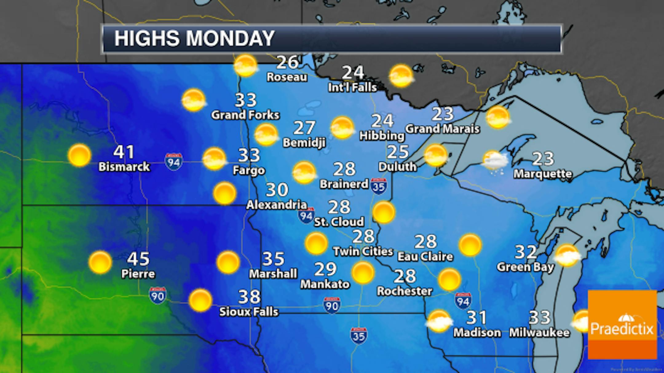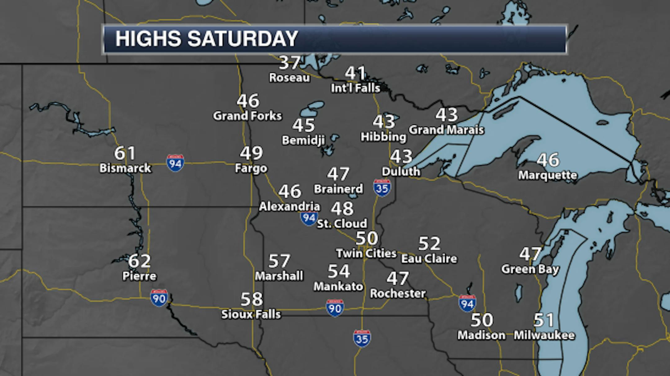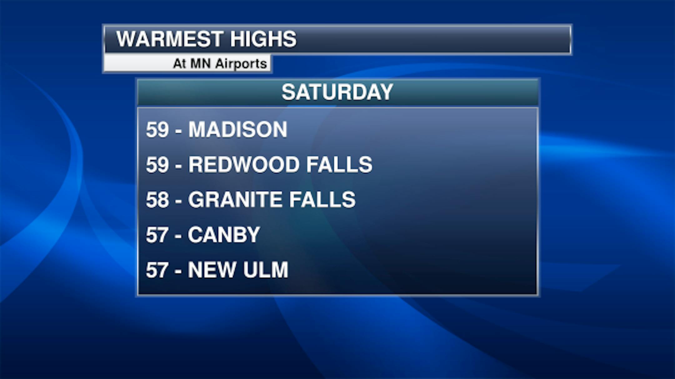 And we saw very nice weather across much of the state Saturday, with highs climbing into the 50s across southern Minnesota. While the Twin Cities made it to 50F, we did see some areas approach 60F near Madison and Redwood Falls.