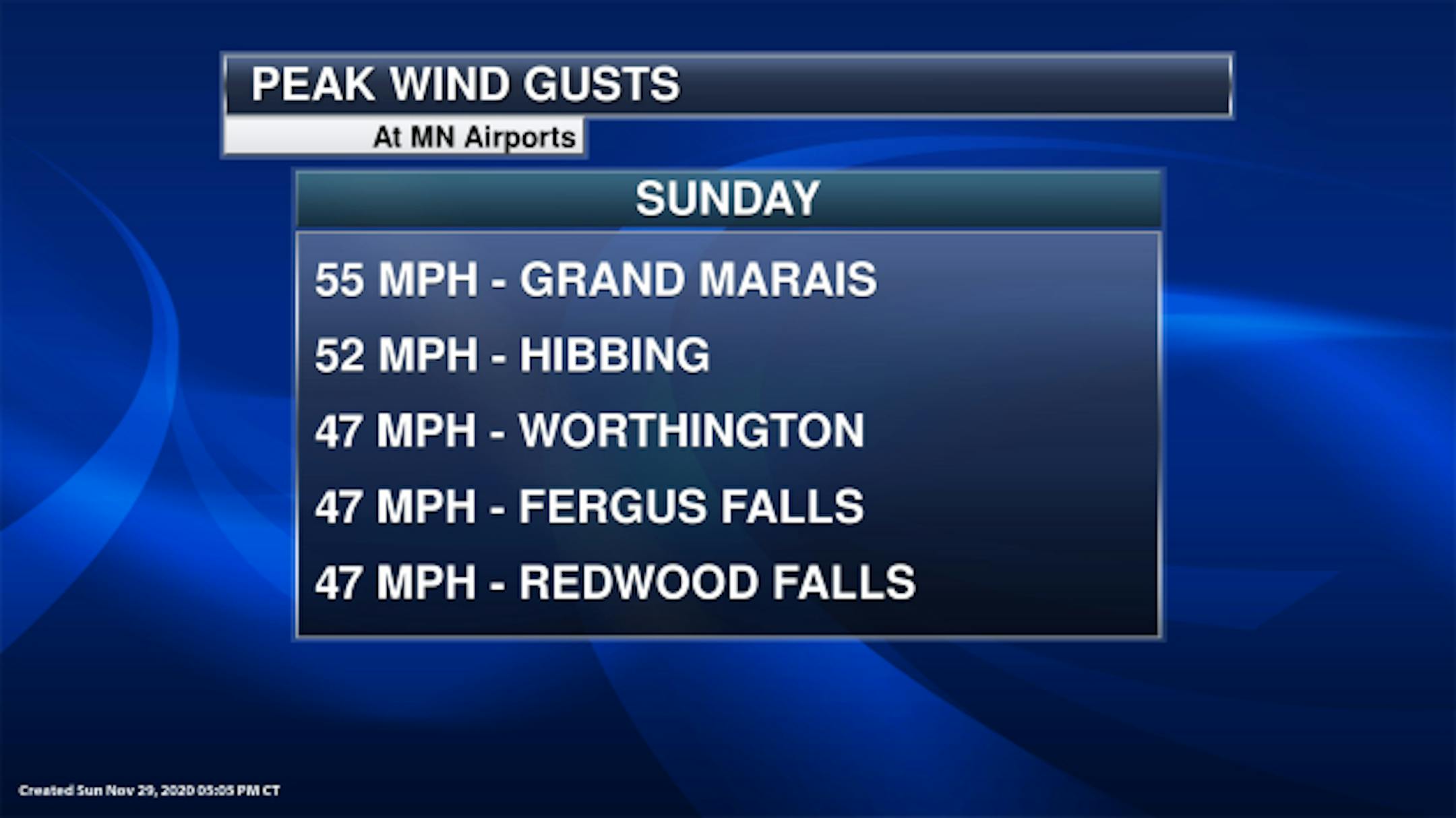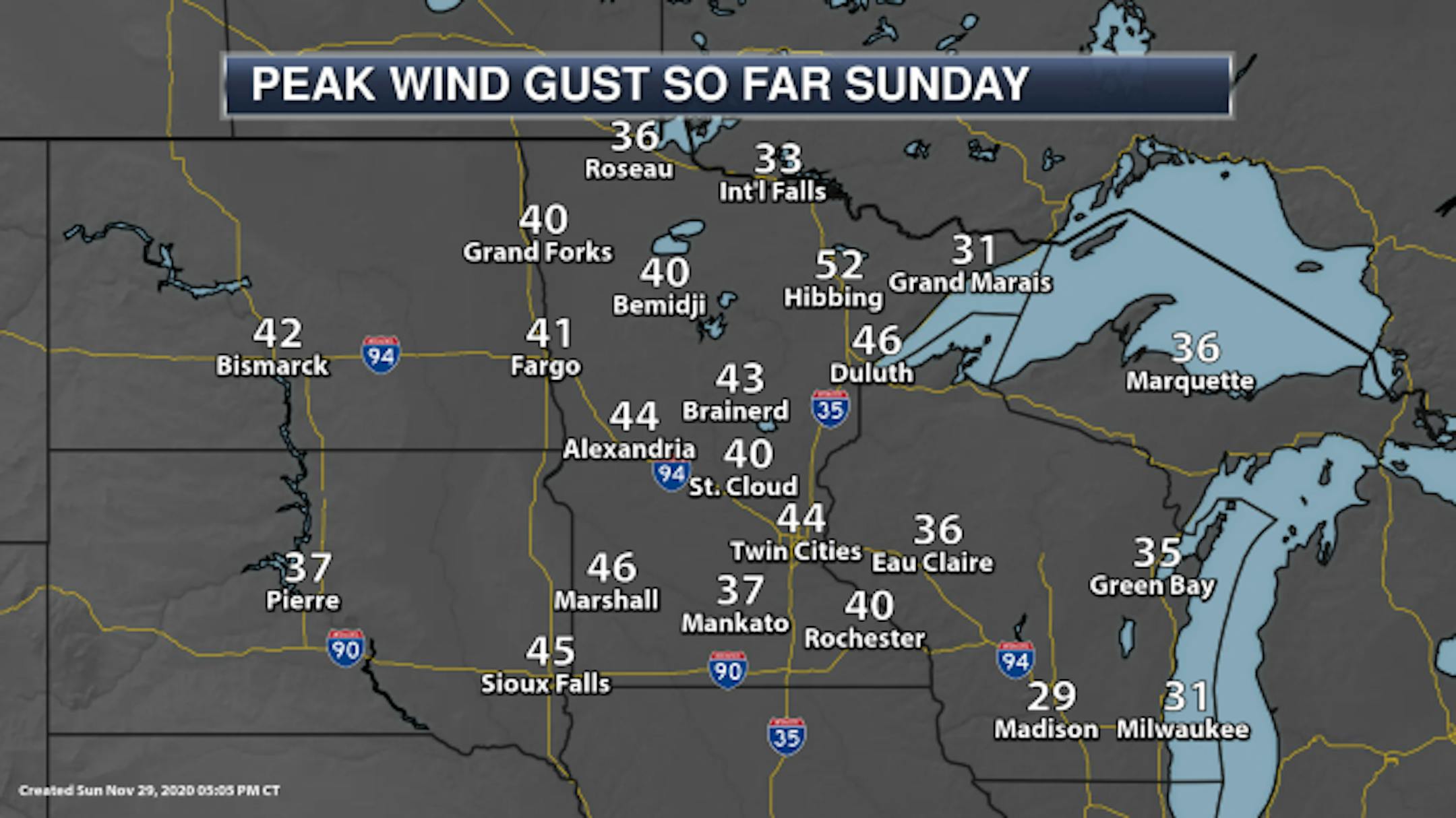We also saw strong wind gusts across the region today, with over 50 mph wind gusts across portions of northeastern Minnesota.