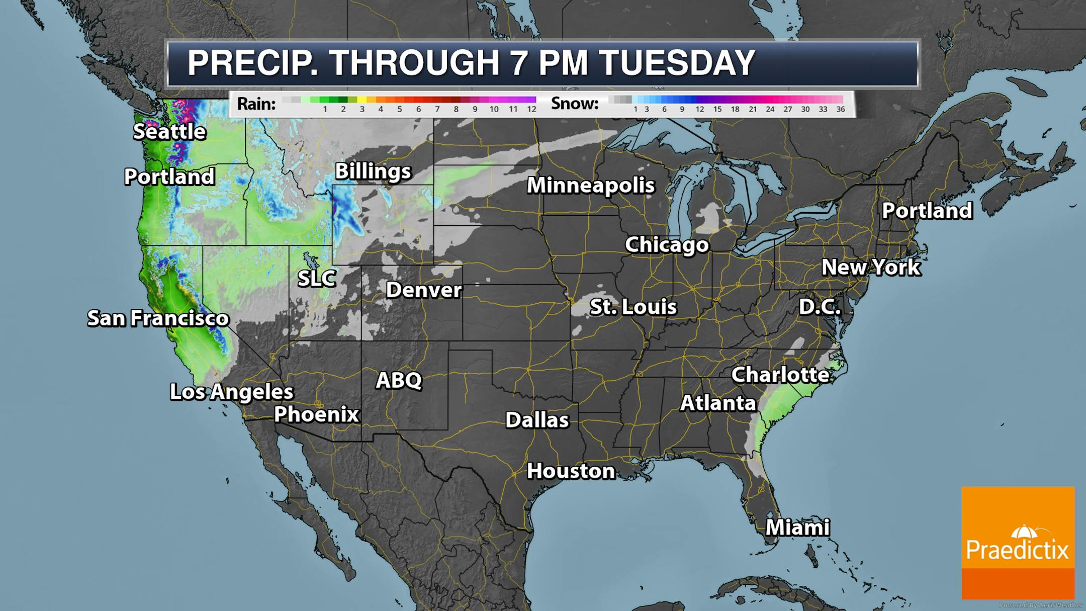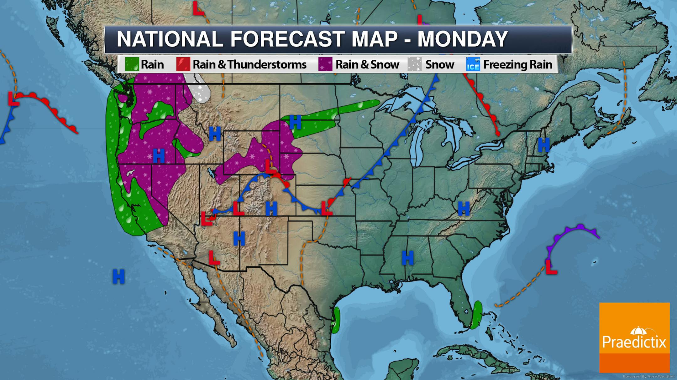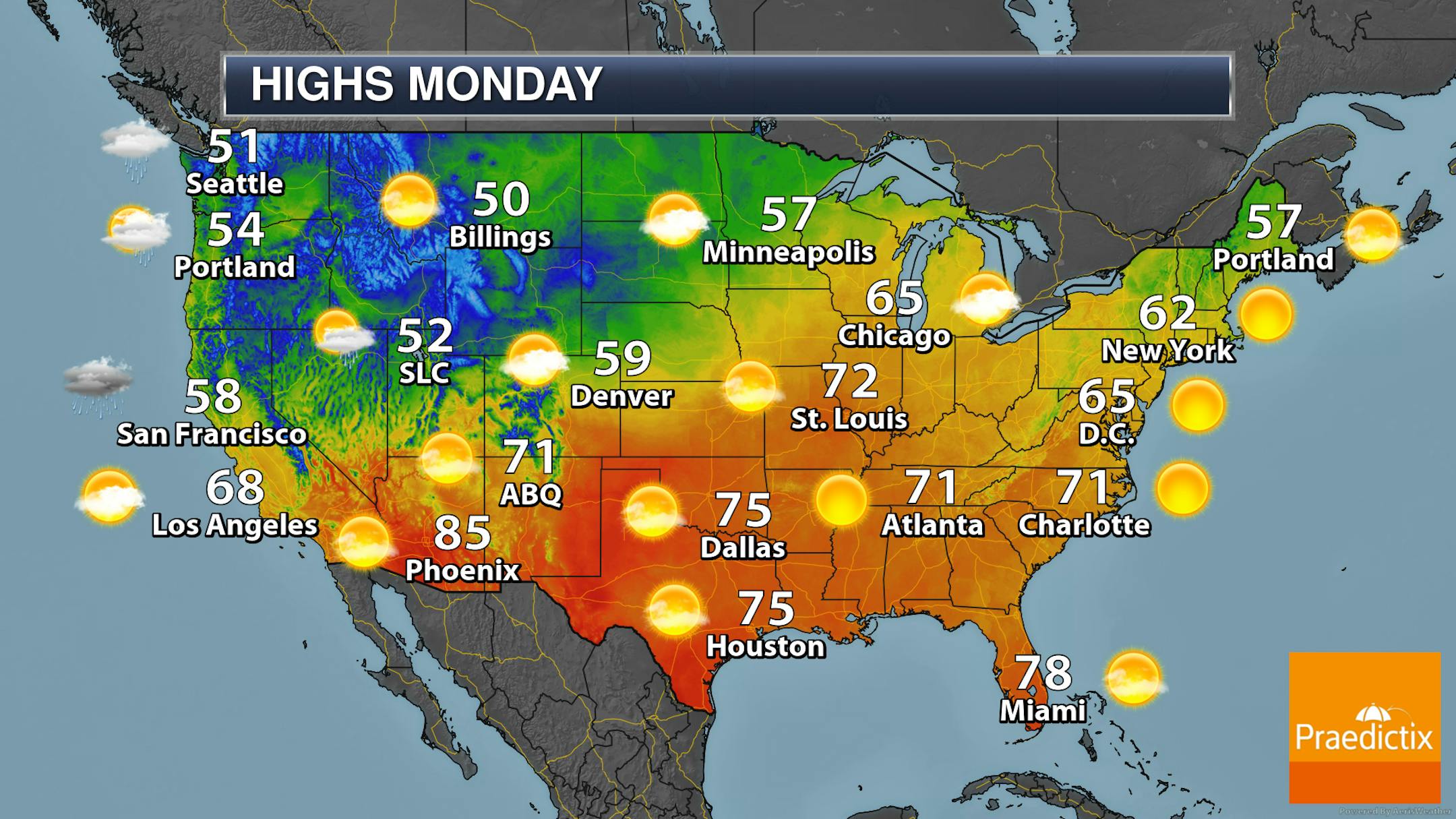 Highs will reach the 50s in many locations Monday afternoon (and just barely as you head north), with highs right around 10F degrees above average. The day will feature a mix of sun and clouds to partly sunny skies. All in all, not a lot to complain about!