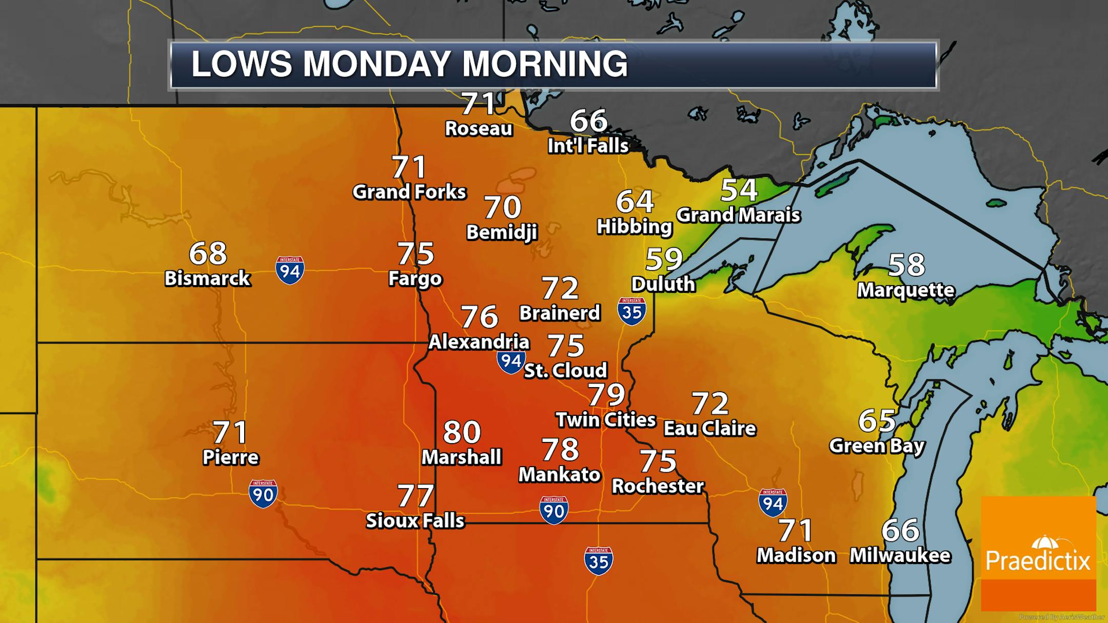 And overnight lows won't be much better, as they will remain at least in the 70s and even have the potential not to get below 80F as we head into Monday morning.