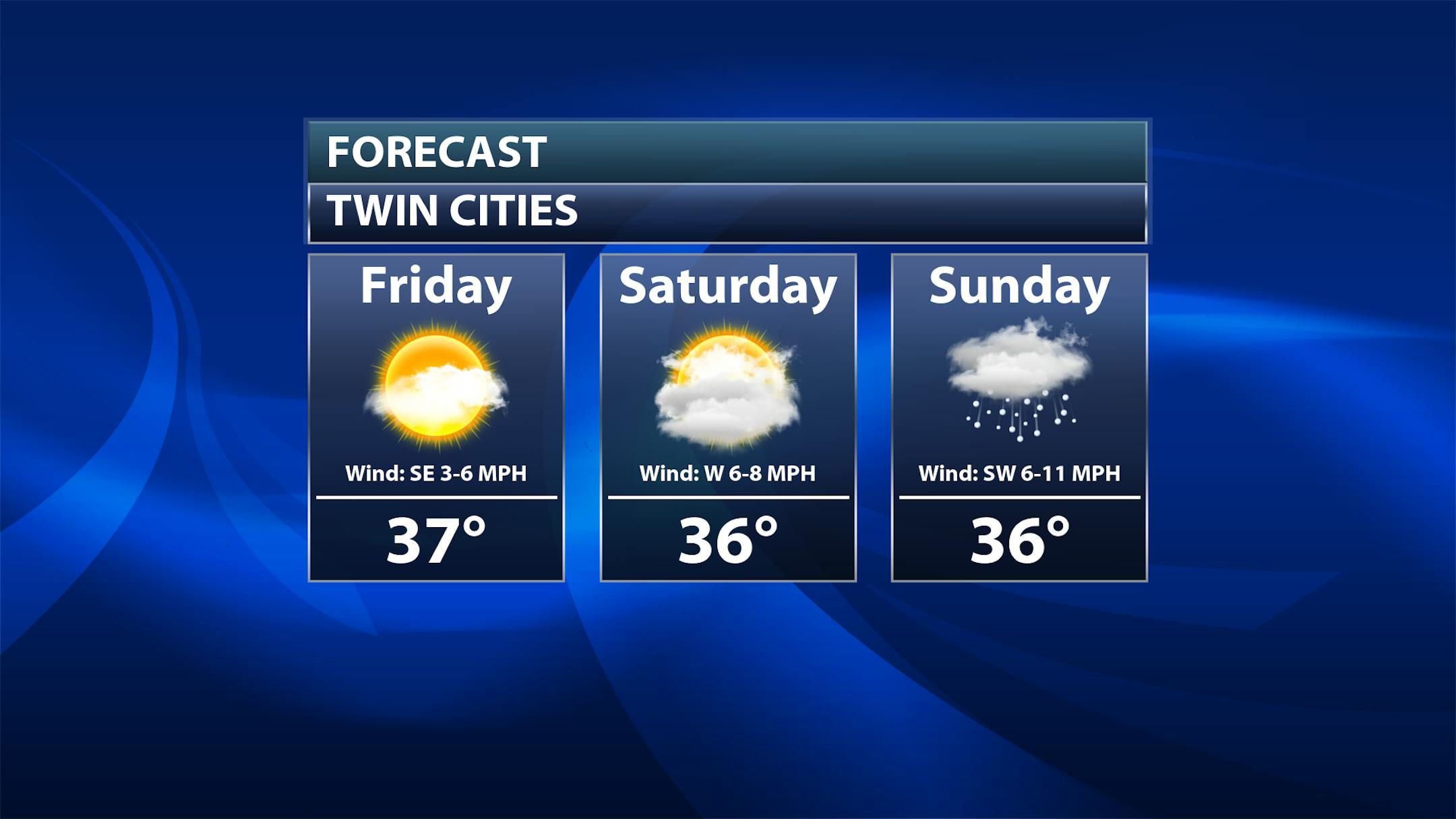 Friday: Another day with a mix of sun and clouds to mainly cloudy skies is expected on Friday, with highs in the mid-30s.