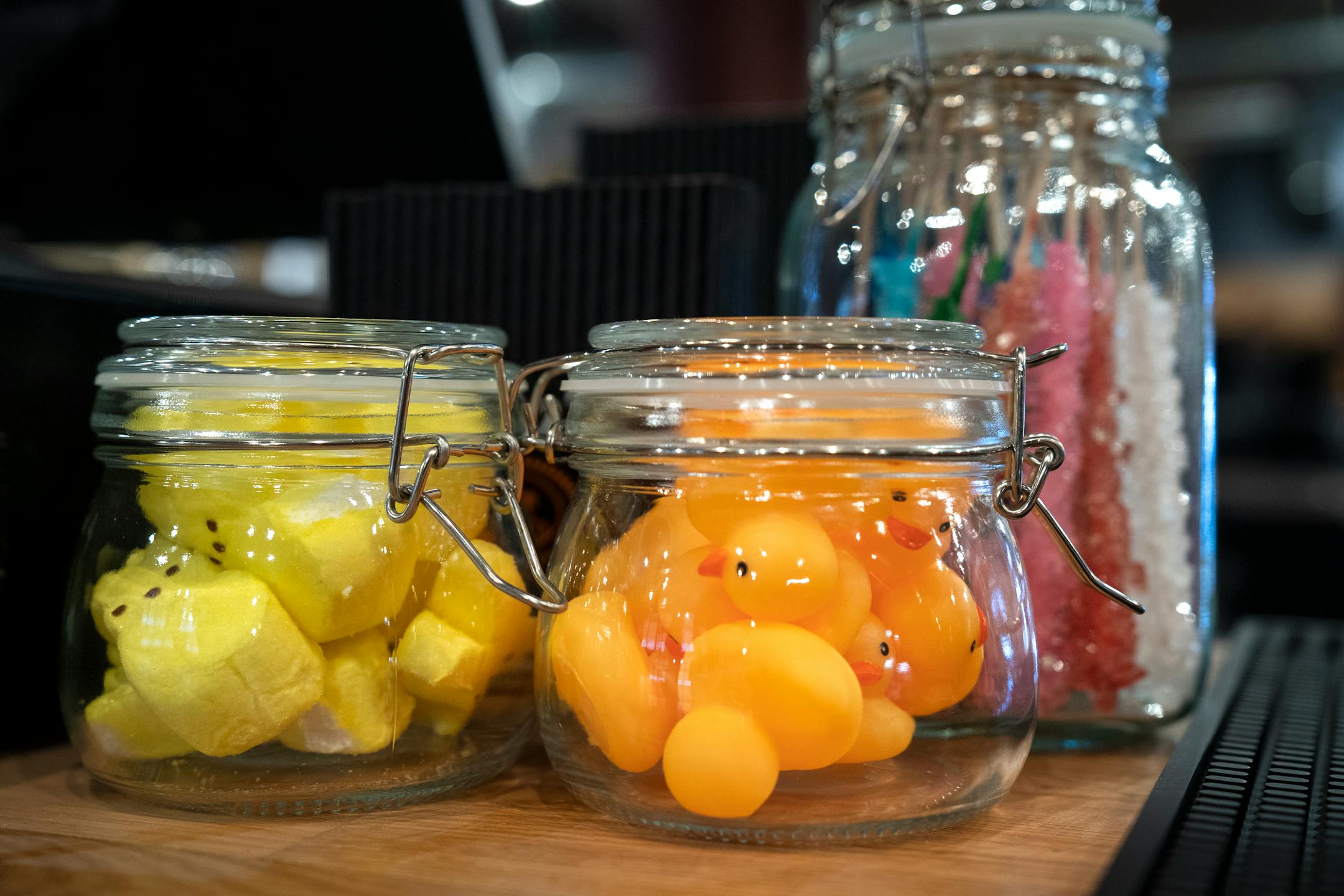 The Rabbit Hole’s playful side carries onto the menu. In addition to cocktail offerings that spin off classics, there’s a secret drink menu. Customers can find hidden QR codes throughout the space that unlock the option to order from three specialty (and Instagram-worthy) cocktails, such as a tropical fruity and frothy egg white concoction topped with a marshmallow Peep.
