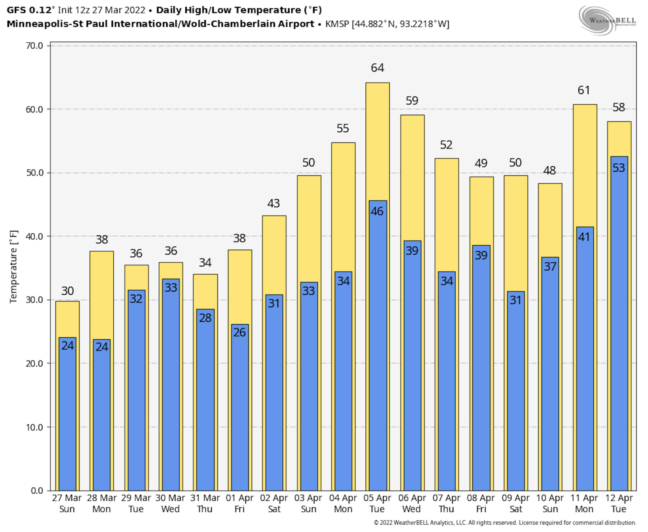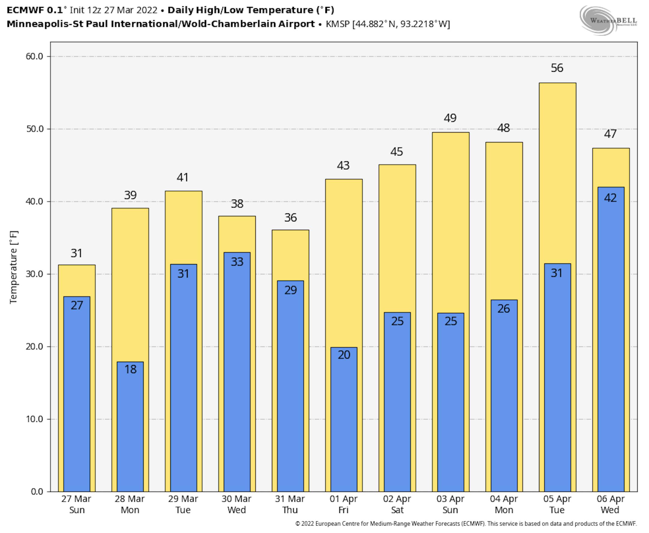 We're still several weeks away from ice out across the state, but according to the MN DNR, here's a look at the average ice out dates for lakes across the state. Note that some lakes across the southern part of the state typically see ice out around the end of March. Lake Minnetonka typically doesn't see ice out until mid April. A few lakes in far northern & northeastern MN don't see ice out until late April or early May.