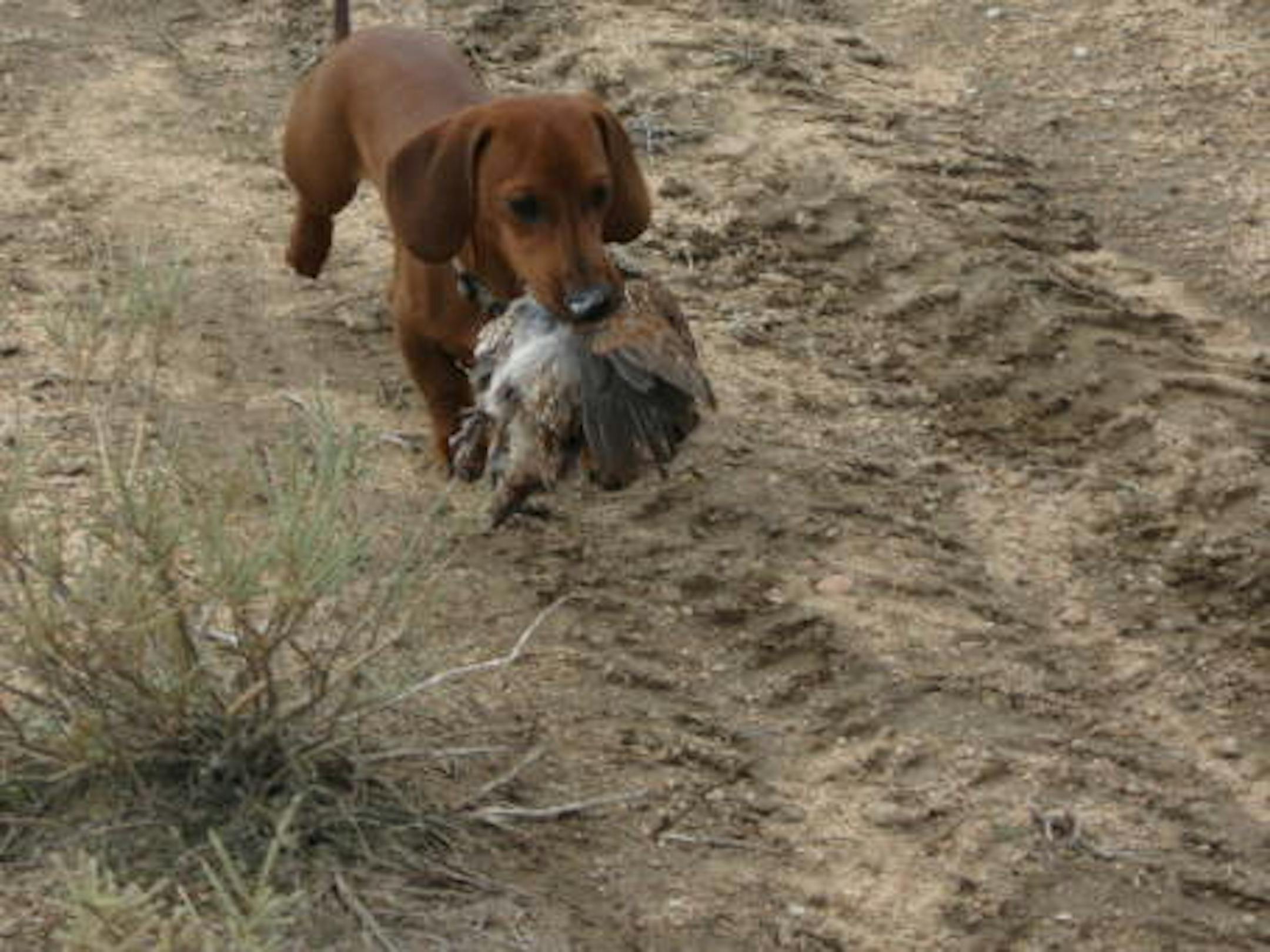 The surprise guest was Digby, the mighty Dachshund that belongs to the club manager. He is a fierce hunter and determined retriever. The quail is about 1/4 his size. He even tries to drag pheasants in too. All heart!