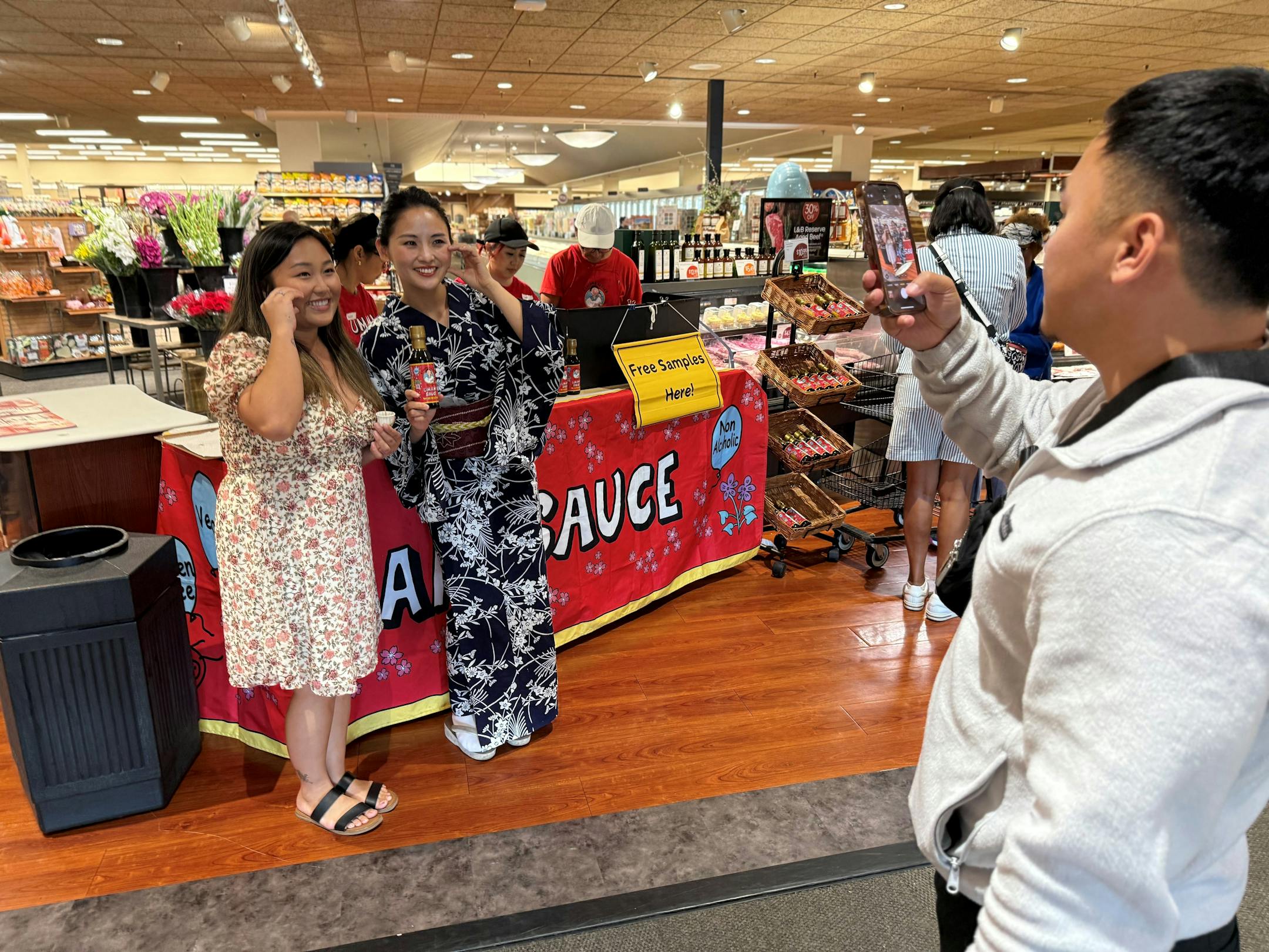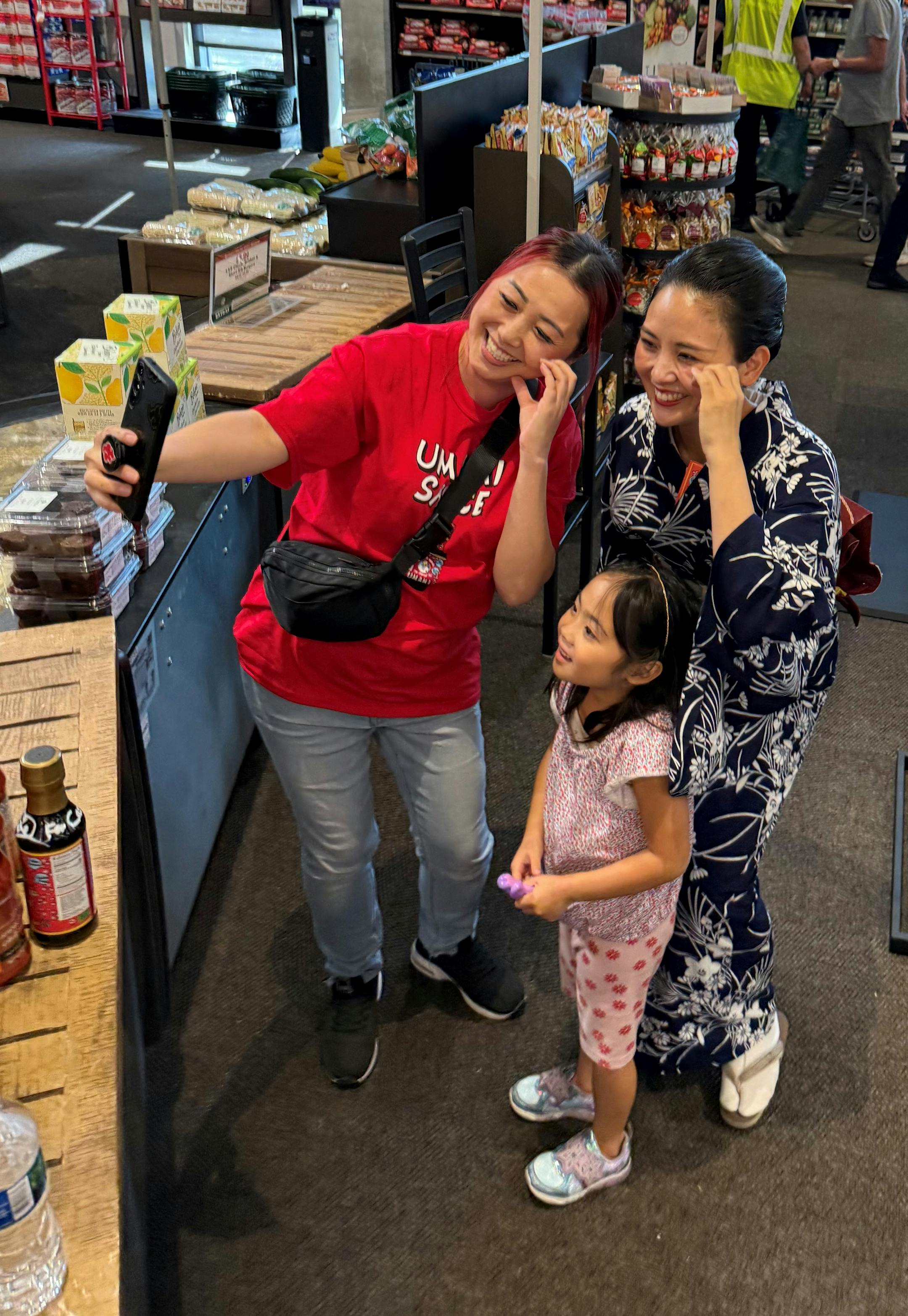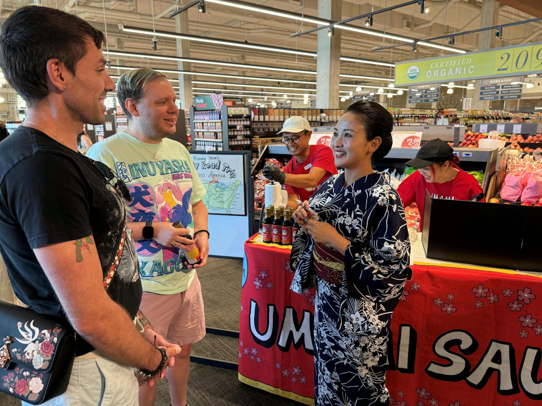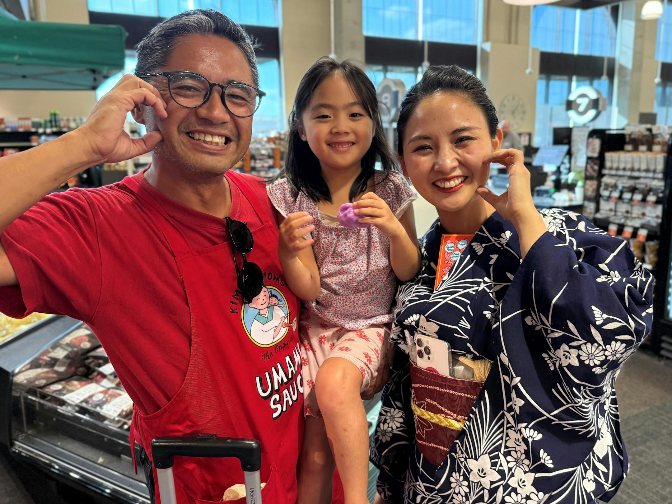 Seven other volunteers and I had signed up to help this family from Tokyo pass out samples of food marinated in Kimono Mom’s Umami Sauce. It’s a sauce Moe developed in 2023 to make Japanese cooking easier for people who don’t have access to ingredients that are common in Japan.