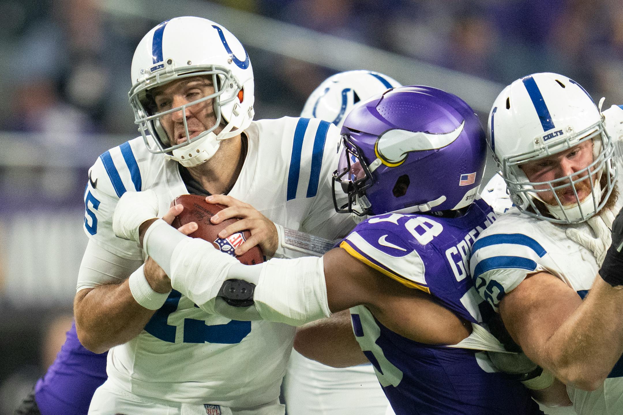 The Colts scored just six points on offense. The Vikings gave them seven more on a Sam Darnold strip sack, and Darnold’s two interceptions helped keep the game close. But Darnold also ripped a bunch of big-time throws on the way to nearly 300 yards passing and three touchdowns.