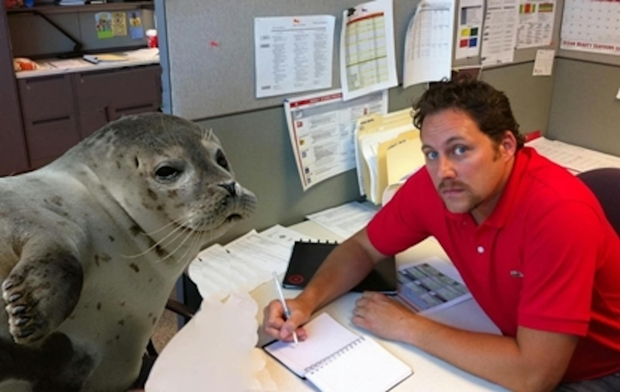 Next up is a man you probably know as Local Quipster. He -- or someone with knowledge of the situation -- has Photoshopped a seal into his picture. There is no known reason for this. But it is a fairly confident 'stache.
