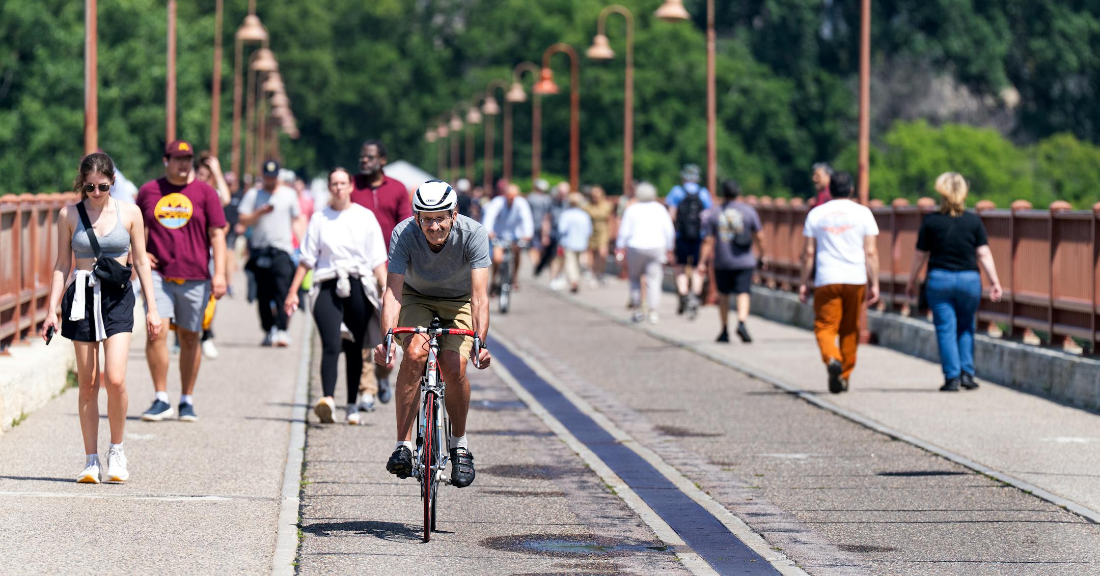 James J. Hill’s Stone Arch Bridge is open again and doing what it does so well: connecting the two sides of our city’s historic riverfront, providing a pedestrian and bike link like those of the park system’s Grand Rounds and offering exhilarating views of St. Anthony Falls, the only waterfall on the Mississippi River.