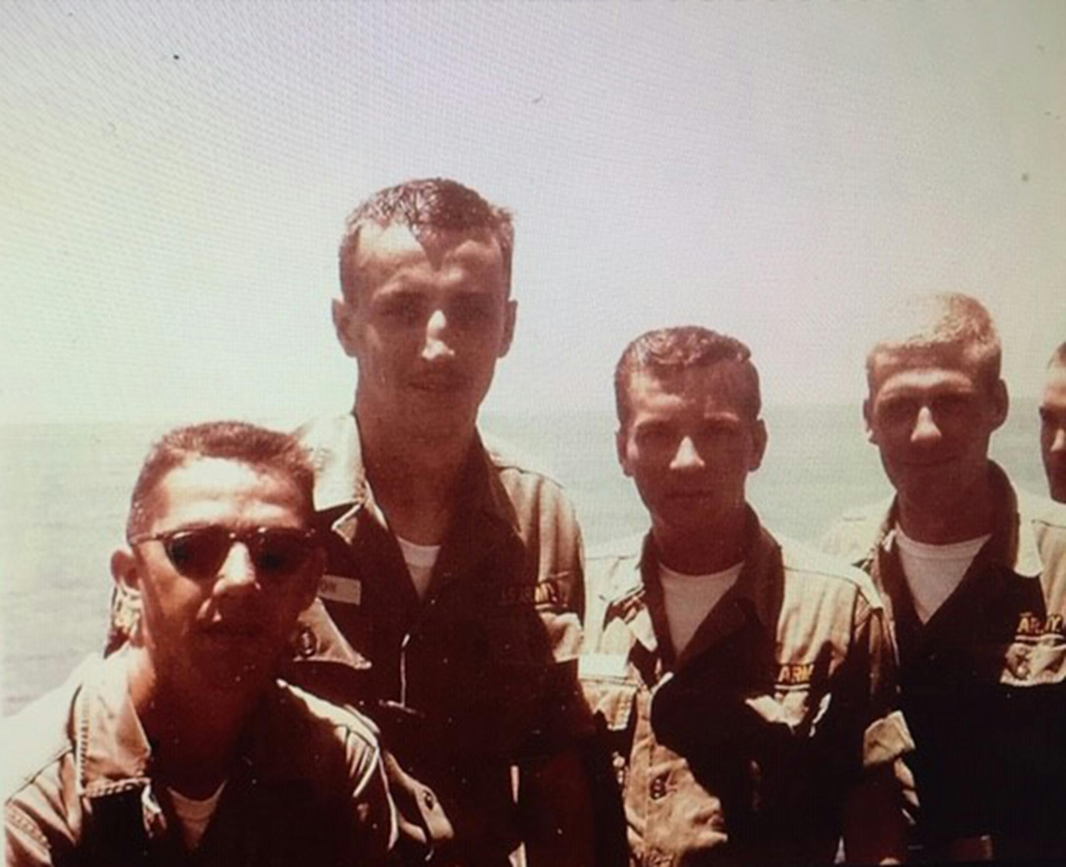 After that first assignment, I served duty far from family and loved ones in the U.S. and in 1965 was given a week's leave to go home to visit family. After we returned to Fort Belvoir, our battalion was part of a large contingent flown to California, boarded on the troop ship USS Mann for a destination unknown except to company commanders and officers — no information for our families as to our destination. Twenty seven days later we arrived at Cam Ranh Bay, South Vietnam. During my tour, we lived in tents, with no showers at first, and ate C-rations, some left over from World War II and Korea. Daily temperatures were up to 117 degrees, and duty was tough in preparing for incoming troops.