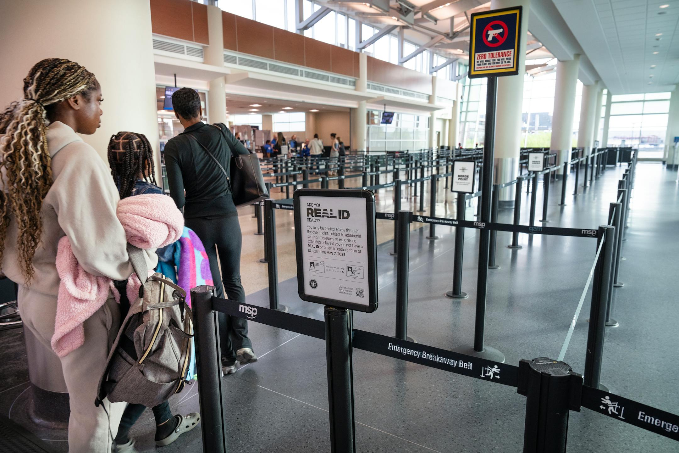 There was no hint of disruption Wednesday at MSP. Lines at security checkpoints breezed along with waits under 10 minutes all morning. Most travelers appeared to have a Real ID or passport as they entered the checkpoints. Few travelers stopped at an information desk in Terminal 1 to ask about the real ID requirements.