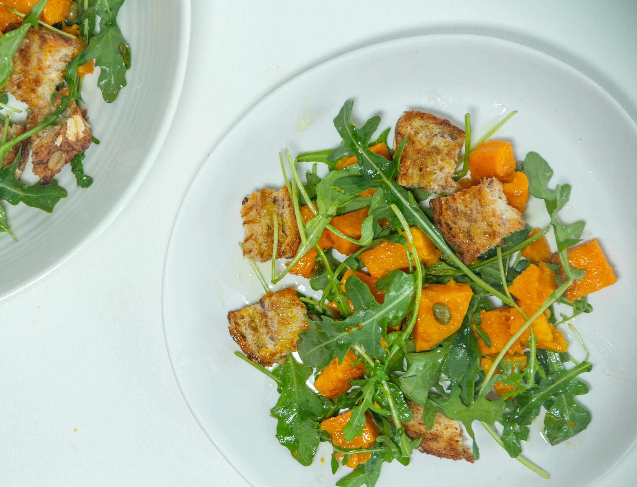 Note: When the juicy tomatoes of summer are gone, switch your panzanella salad to one made with tender roasted squash. Butternut, or another soft squash, is perfect for this. Using a hearty whole-grain bread not only makes this higher in fiber and flavor, but the bread doesn't fall apart as quickly as white bread would. From Robin Asbell.
