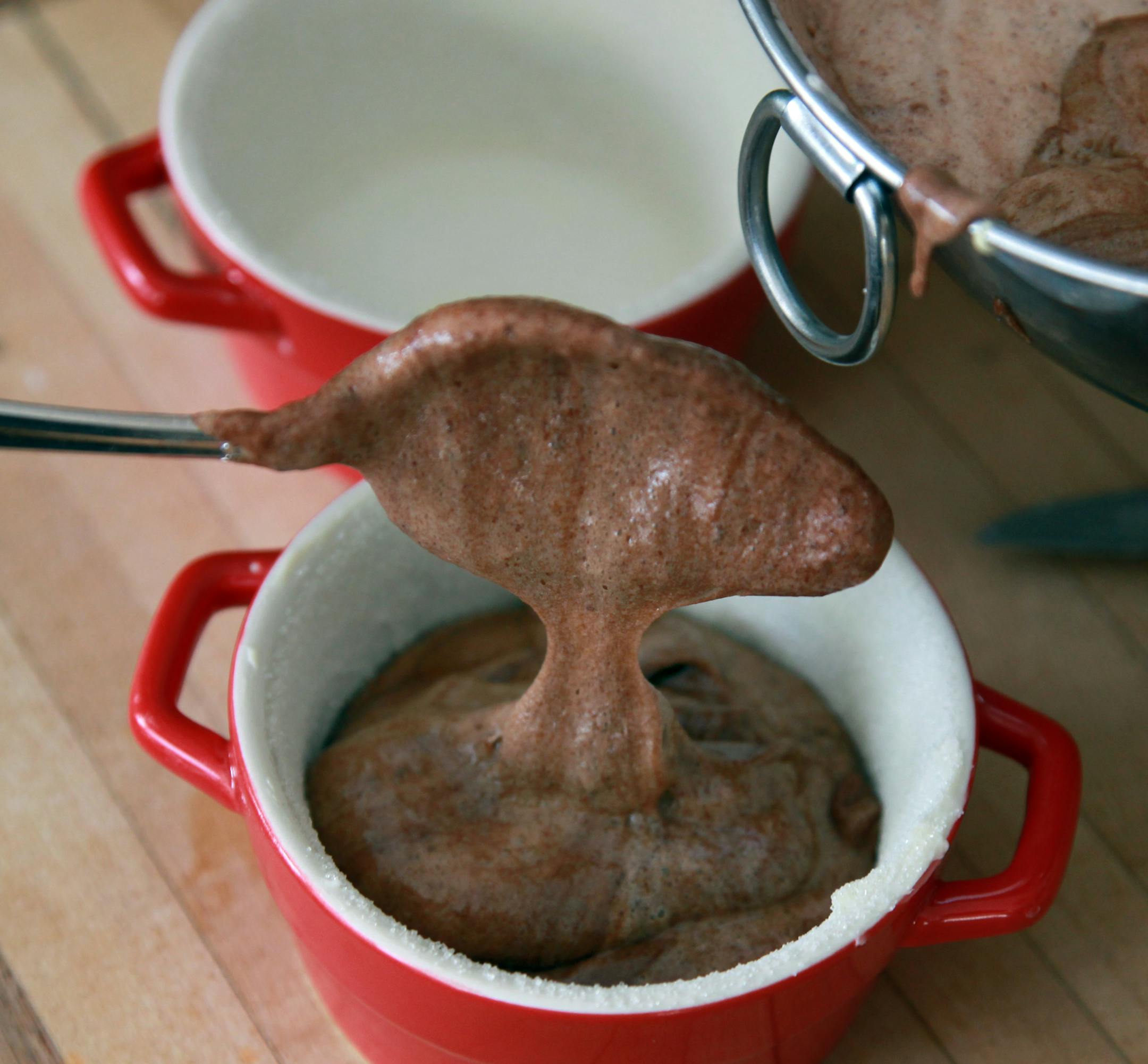 Note: Quality chocolate is important; look for bittersweet in the 70 percent cacao range. The recipe is for two 8-ounce servings, but you also can make four smaller servings with 4-ounce baking dishes. Check smaller soufflés after 16 minutes. (Extra soufflés will fall, but still are delicious, chilled, the next day.)