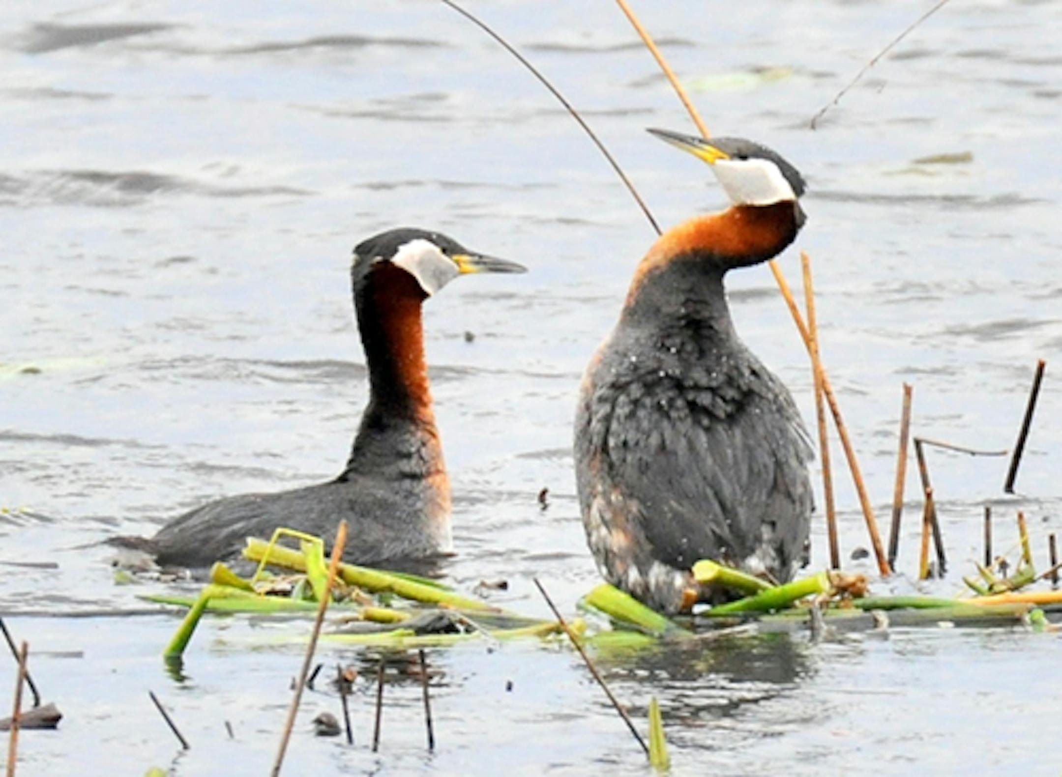 Red-necked Grebes are common to uncommon breeders in Minnesota, their presence determined by lakes of their preference. They like large shallow bodies of water, similar to the one Jude and I found north of the metro area in mid-April.