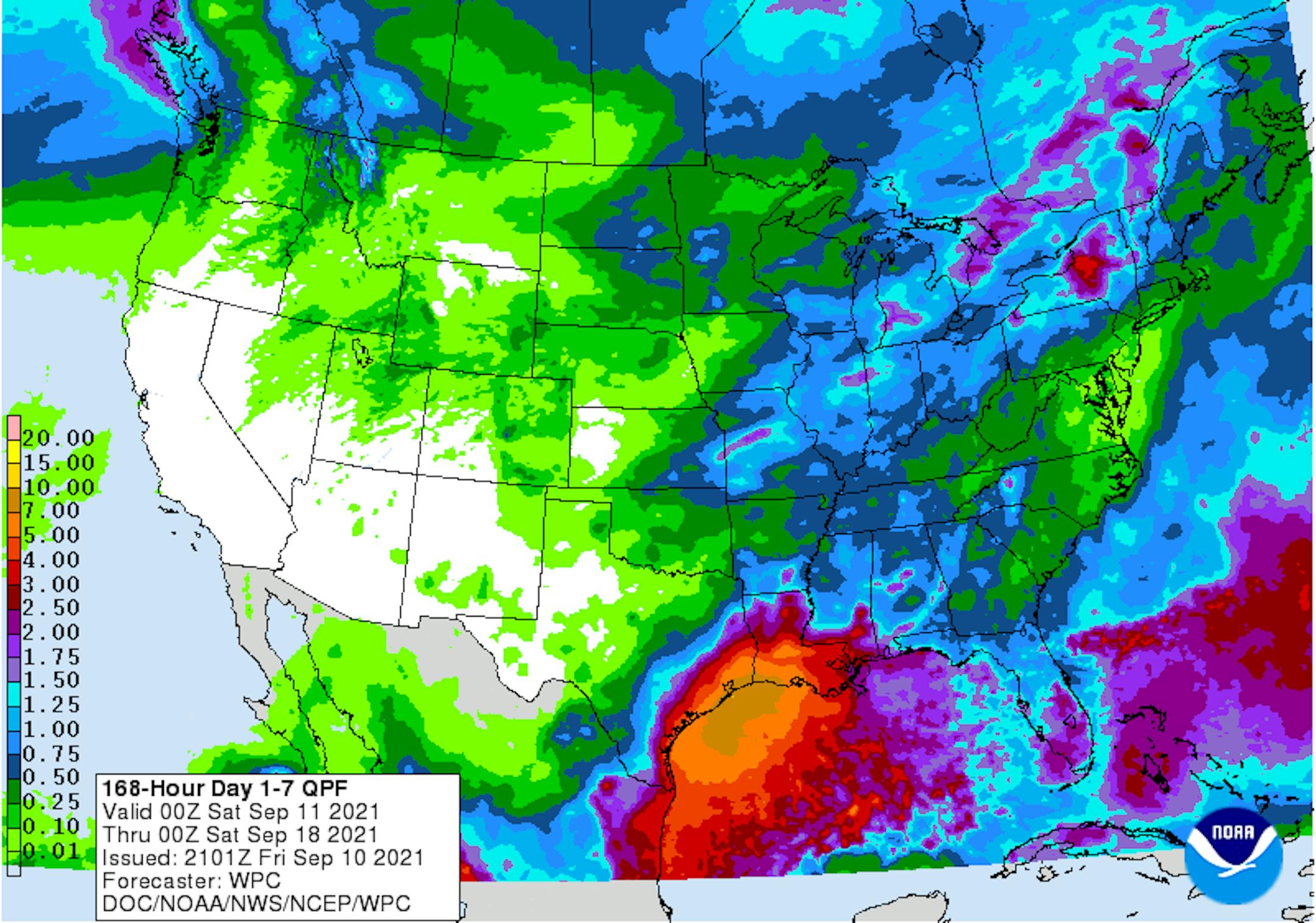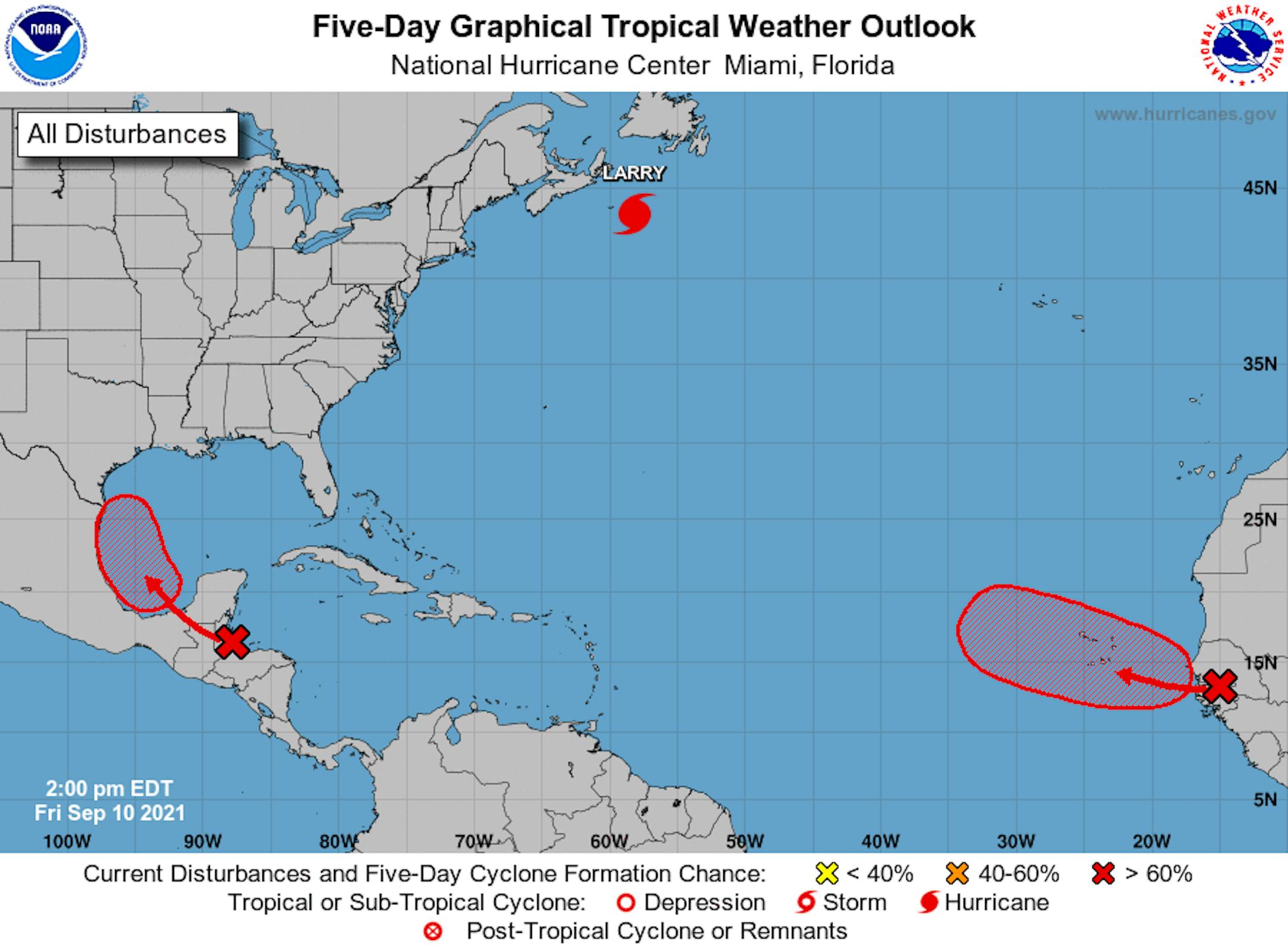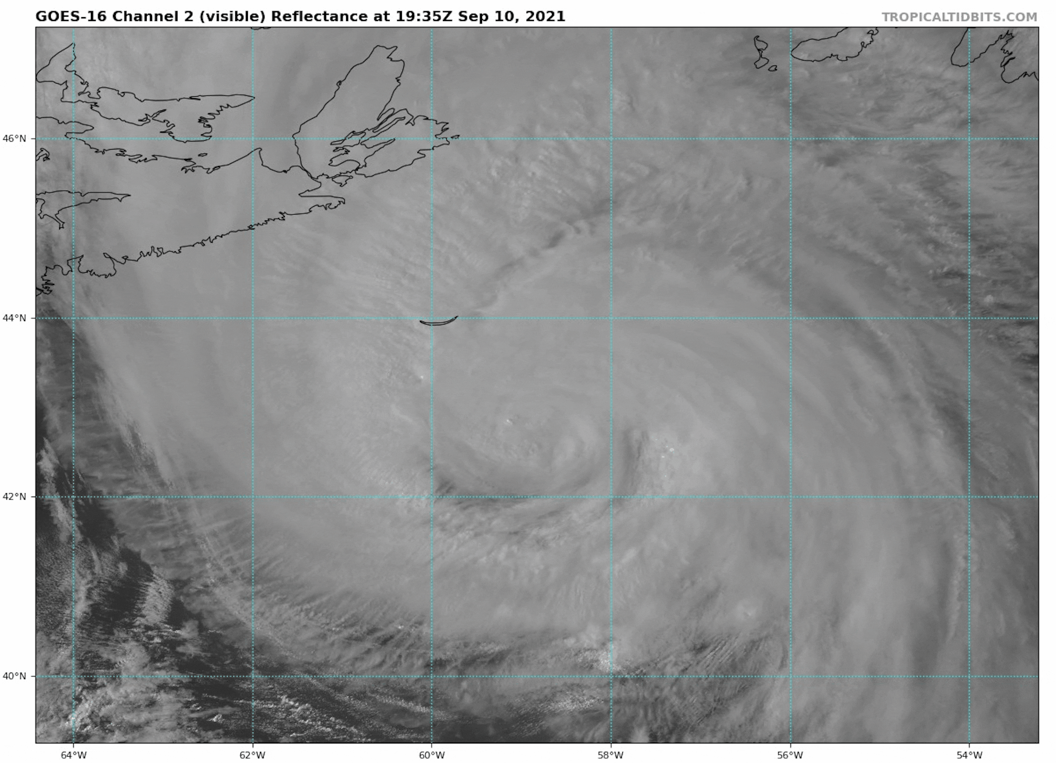 Take a look at the visible satellite loop of Hurricane Larry from PM Friday. At this point, Larry was a category 1 storm with 80mph sustained winds in the northcentral Atlantic and east of Nova Scotia. At one point last week, Larry had 125+mph winds. Interestingly, there have only been 3 other Atlantic seasons on record that have had 3 hurricanes with max winds of 125+mph by September 4th: 1933, 2005 and 2008. Hurricane Grace & Ida had maximum winds of >=125mph winds already this year.