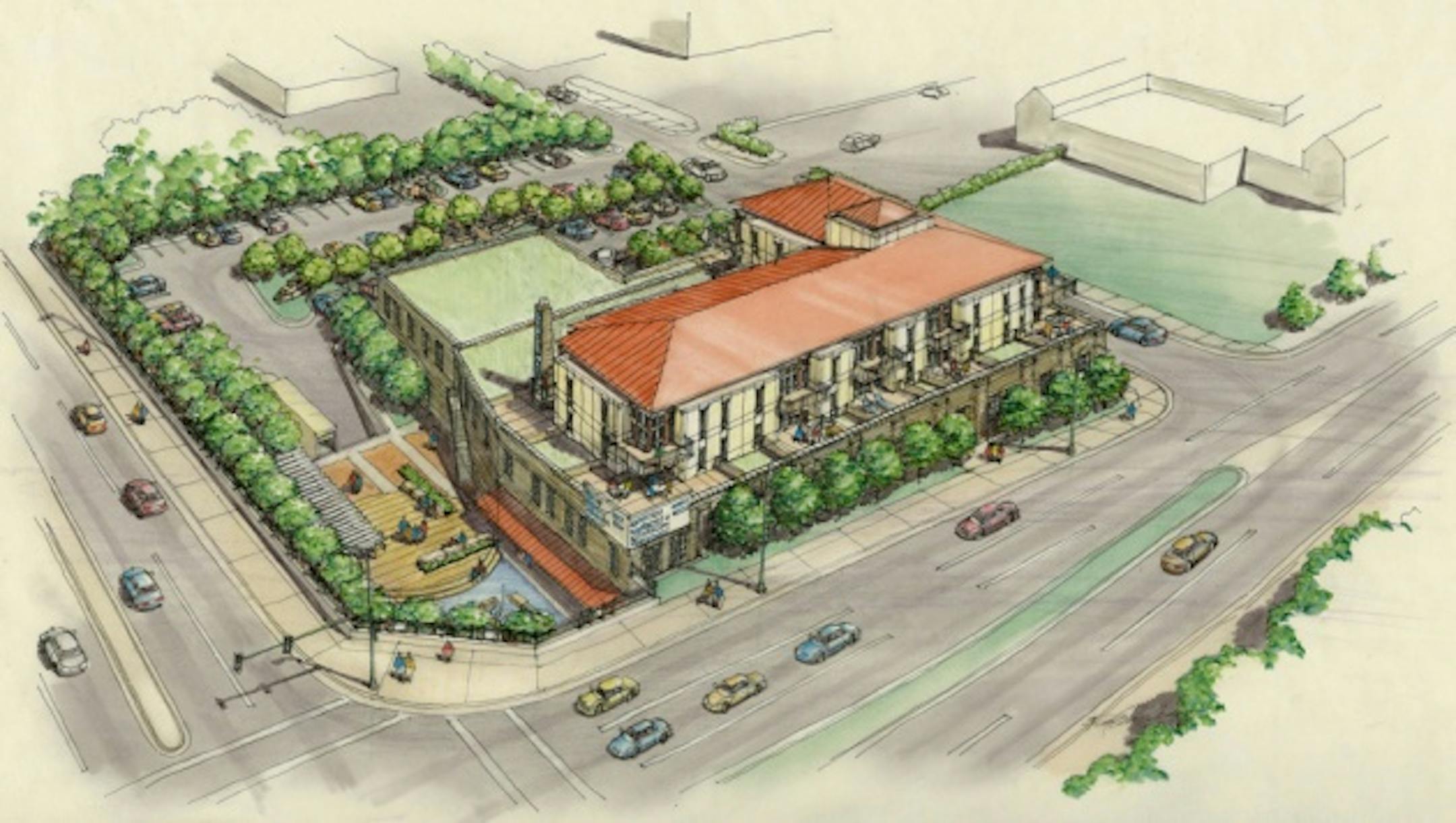 In a nod to Northeast Minneapolis' strong arts scene, The Broadway will feature a vertical glass gallery where artwork solicited by First & First will be visible to those in the Broadway & Central area.