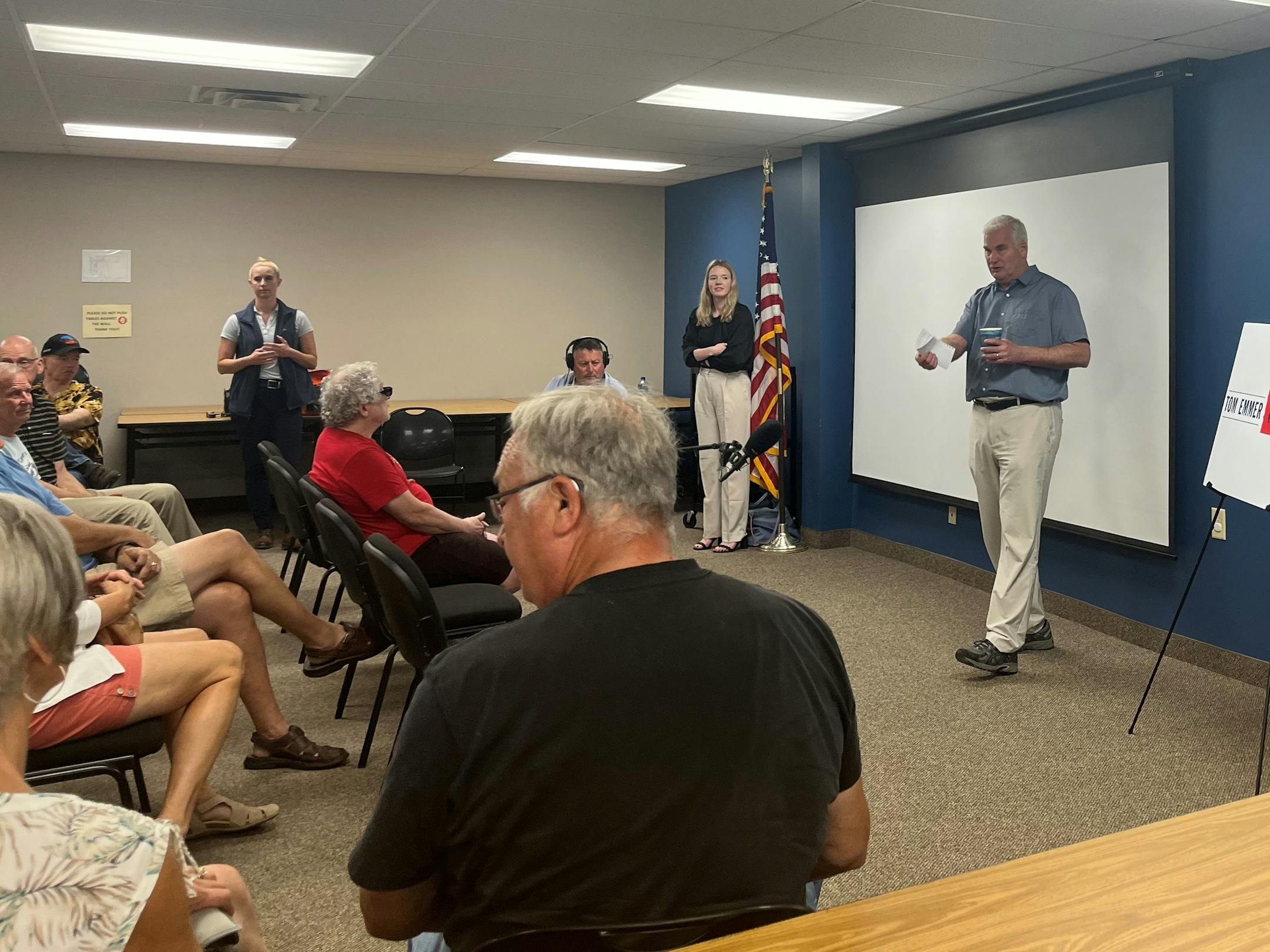 In Big Lake, he faced questions about former President Donald Trump, Medicare, term limits and the budget vote.
