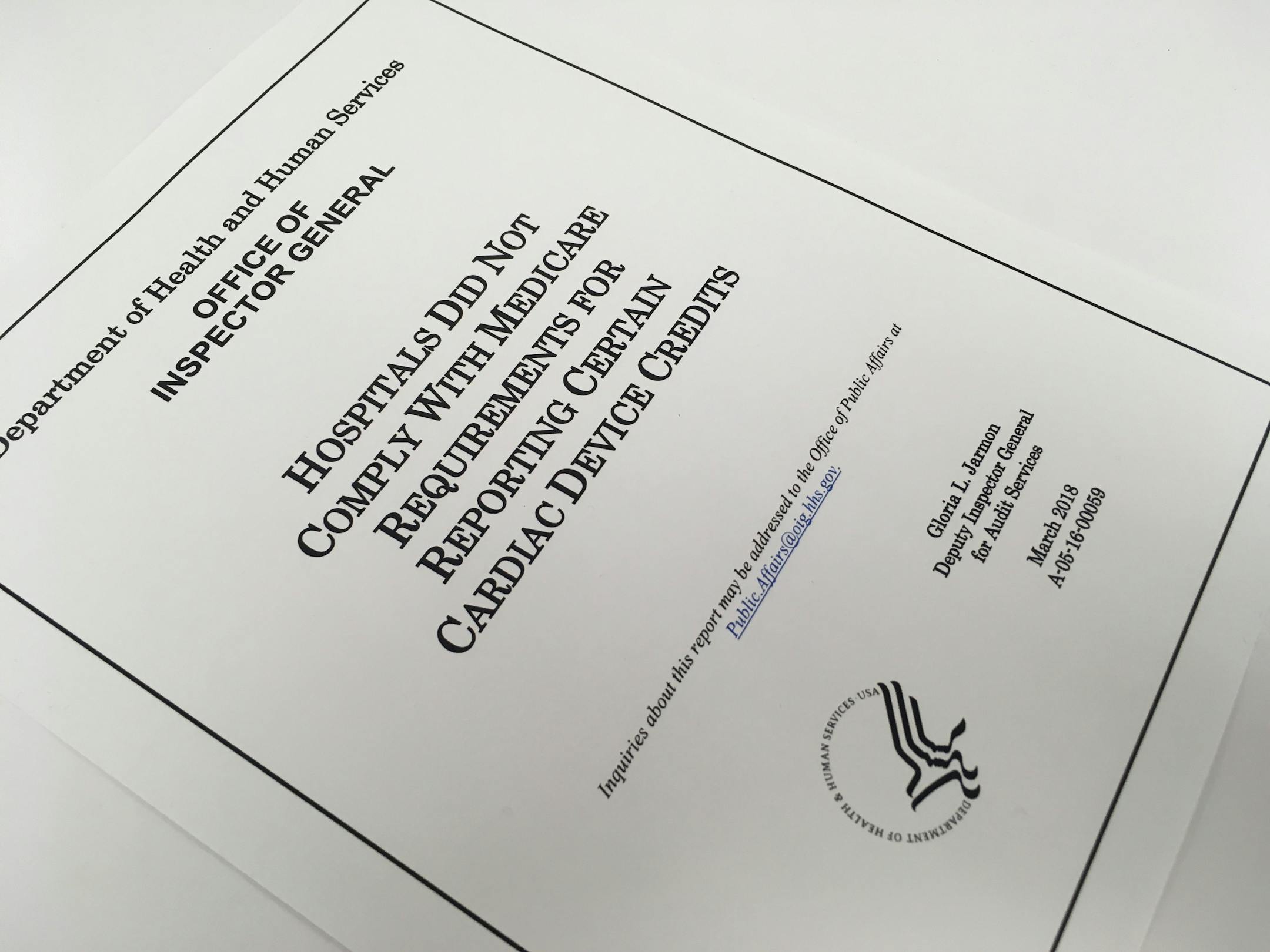 In a report out last week, the Medicare inspector general's office concludes that 210 hospitals failed to report a total of $4.4 million in manufacturer warranty credits that should have been passed along to the government insurance program.