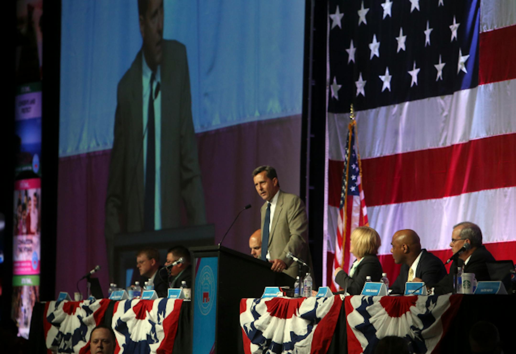 "Who is ready to win some elections in 2014?" Republican chairman Keith Downey asked the cheering crowd.