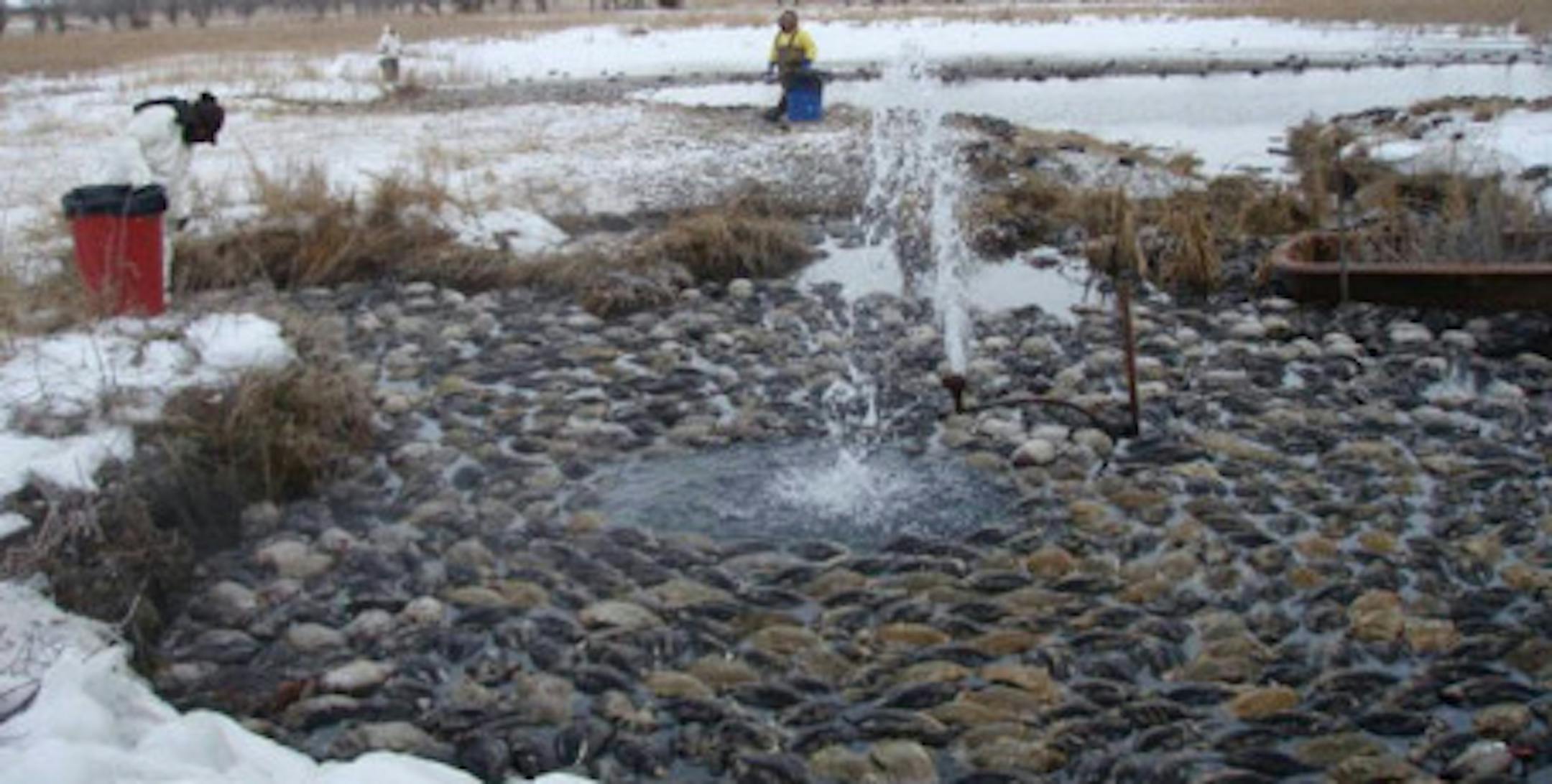 Test results have confirmed that the 8,000 mallards found dead in South Dakota earlier this winter died from respiratory fungal infections, likely picked up when the birds ate moldy grain. The die-off occurred over several days in January and February near Lake Oahe in the Pierre, S.D., area. The U.S. Geological Survey's National Wildlife Health Center (NWHC) tested some birds and determined respiratory infections likely were to blame. A sample of thirteen dead mallards were sent to NWHC for diagnostic necropsy. Initial results indicated that at least two of eight died due to aspergillosis, a respiratory tract infection caused by the inhalation of spores produced by fungi. Asperillosis has been known to cause previous mallard die-off events, including an event that occurred near Pierre in 1985. Further testing, including histopathology analysis of lung tissues, later confirmed that two of the other six mallards also died from a fungal respiratory infection, possibly caused by a different genus of fungi. Scientists at NWHC are continuing tests to try to identify the fungal pathogen associated with disease in these birds. Fungi can also cause avian morality by producing toxins (mycotoxins) that target the liver; however, lab results did not indicate mortality from liver disease. Officials said the mallards most likely developed the fungal respiratory infections after being exposed to moldy corn found at a nearby feedlot and in the digestive tracts of some ducks. However, lab findings did not definitively determine the source of fungi that infected the mallards. The fungal disease found in the ducks isn't considered contagious to other birds, and humans are'nt considered susceptible unless they have an immune system deficiency or develop an allergic reaction, which is rare. More information on aspergillosis and other fungal diseases is available in the National Wildlife Health Center "Field Manual of Wildlife Diseases" available at http://www.nwhc.usgs.gov/publications/field_manual/index.jsp).