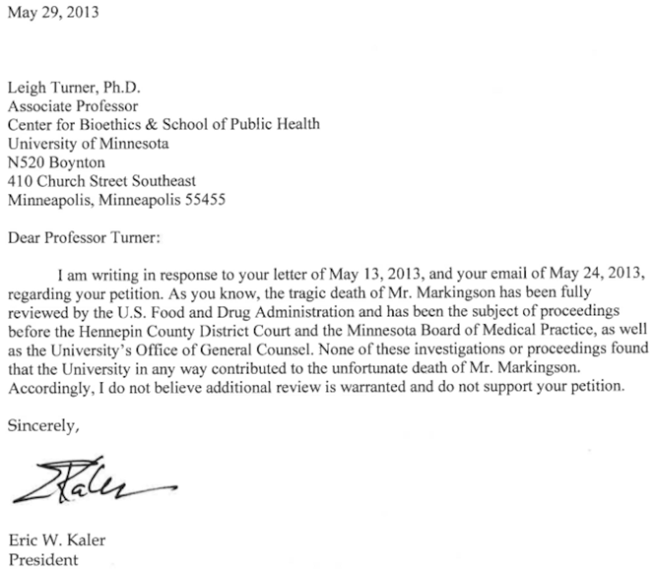 Response to University of Minnesota President's Letter
