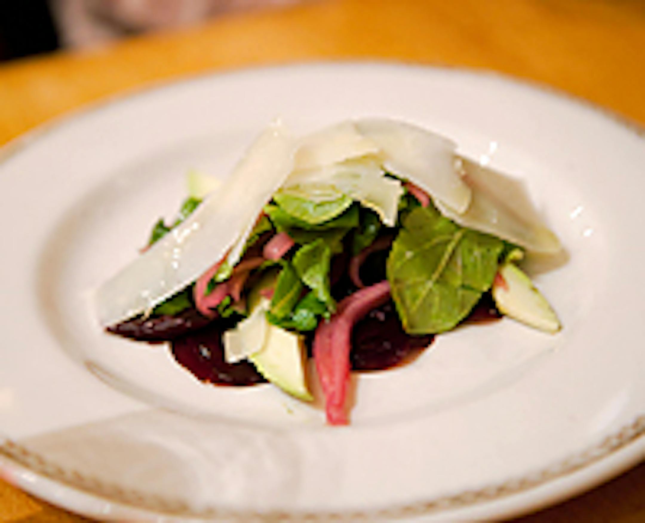 When you go, you'll get to experience one of the rarest dishes in fine dining -- the properly dressed salad. Whereas so many good restaurants drown their salads in vinaigrette, Tosca offers three that barely glisten with dressing but still pack the necessary flavor punch to make the vegetables dance. The green salad ($7), featuring goat cheese-topped dates and almonds, benefits from a careful drizzle of sherry vinaigrette, which ties together the crunch of the nuts with the sweetness of the dates. Also drawing raves was the beet carpaccio ($9), with a sprinkling of sea salt balancing the sweetness of the tender spheres of blushy beet, the tang of pickled onions, the creaminess of avocado, the crunch of arugula and the soft bite of pecorino.