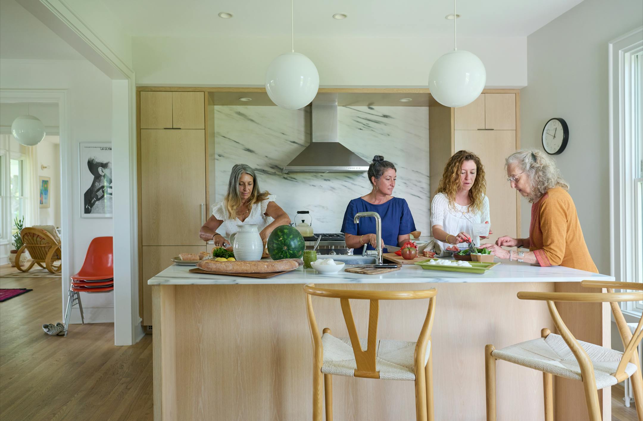 There is, after all, an unmistakable gravitational pull between members of this close-knit family, who seem to do just about everything together. Many of them even share a multigenerational home on a converted farm in Egremont, Massachusetts, occupying 15 pastoral acres in the foothills of the Berkshire Mountains. Carroll, 42, and her husband, Ian Rasch, 44, a developer and builder, live with their 6-year-old daughter in the property's farmhouse, built from 1850 to 1875 near the top of what is known as Baldwin Hill. The adjacent 1820s barn has been converted into two residences, the top one occupied by DeLuca, 63, and the one below by Rasch's mother, Julia Rasch, 73, who is a midwife.