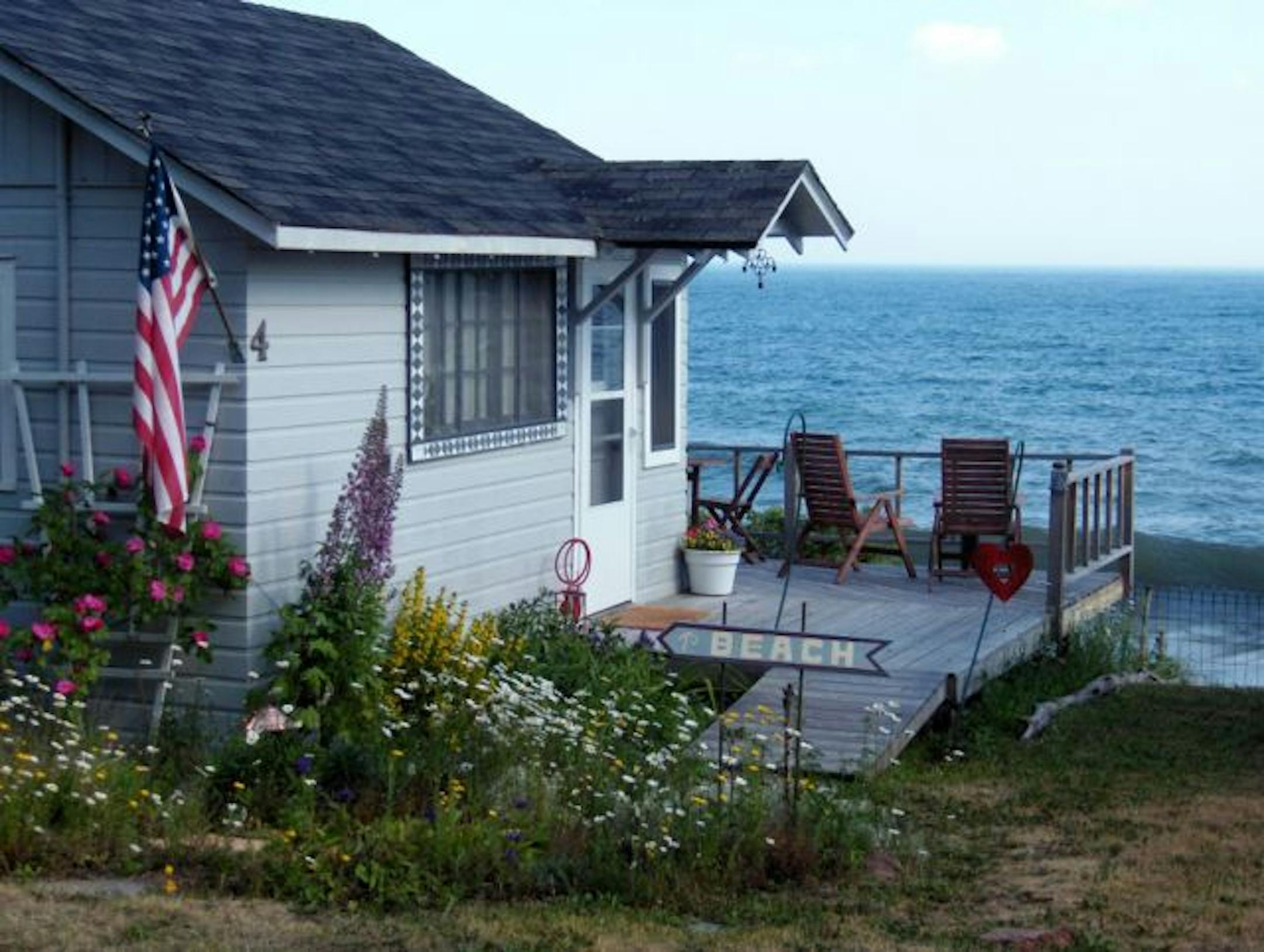 Steve Schack is counting the days until May 1, when he and his wife, LeAnn Baker, will open their cabin on Lake Superior in Grand Marais, Minn. The Lino Lakes couple bought their 400-square-foot cabin five years ago from a close friend. The interior walls and ceiling were inspired by Cree Indian designs at the nearby Naniboujou Lodge and were painted by the previous owner. Schack and Baker still offer her a week's stay in late spring, when she tends the English garden she began. The couple list their property with other Lake Superior rentals at www.cascadevacationrentals.com.