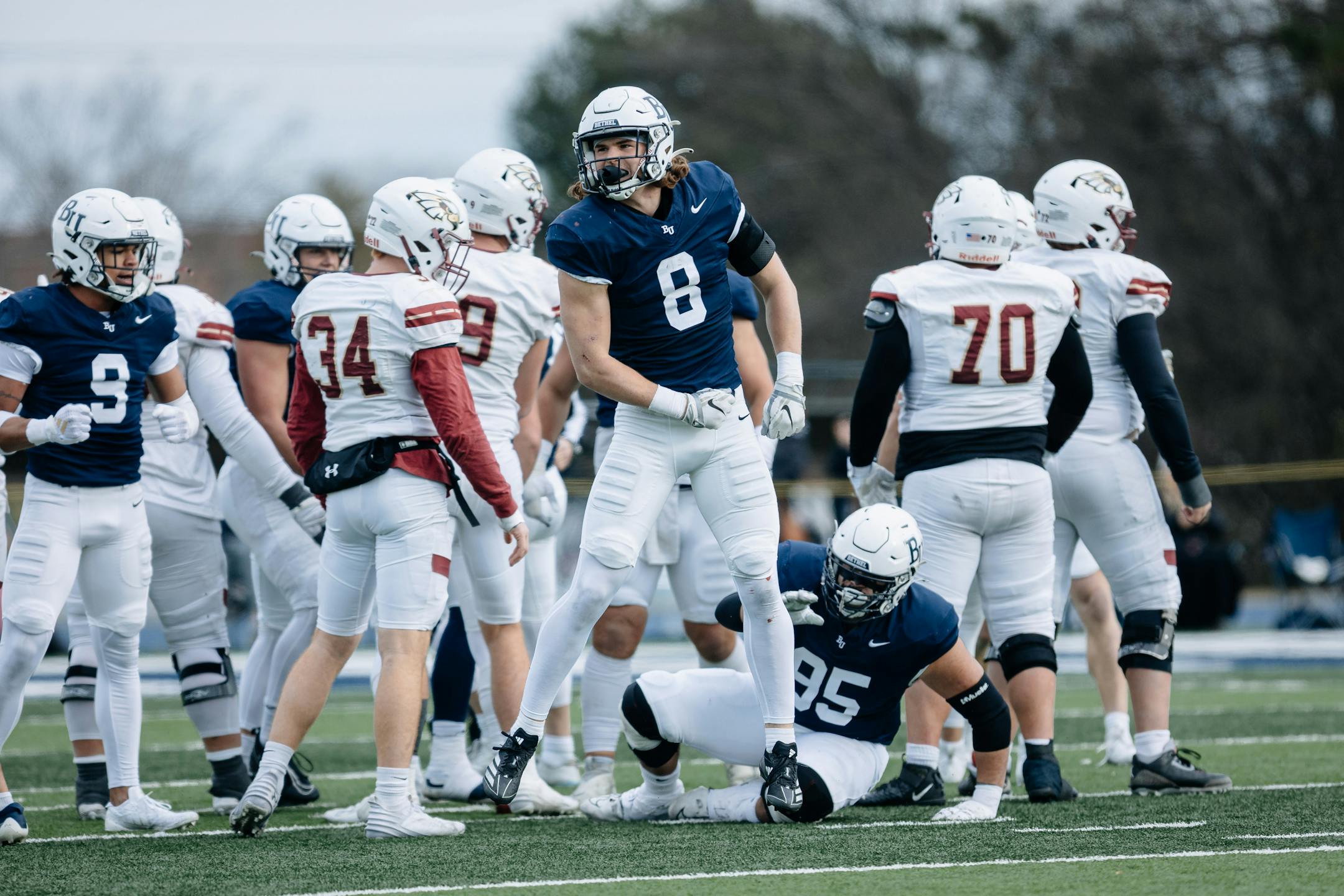 Bethel 49, Concordia 16, with the giant safety returning two interceptions for touchdowns.