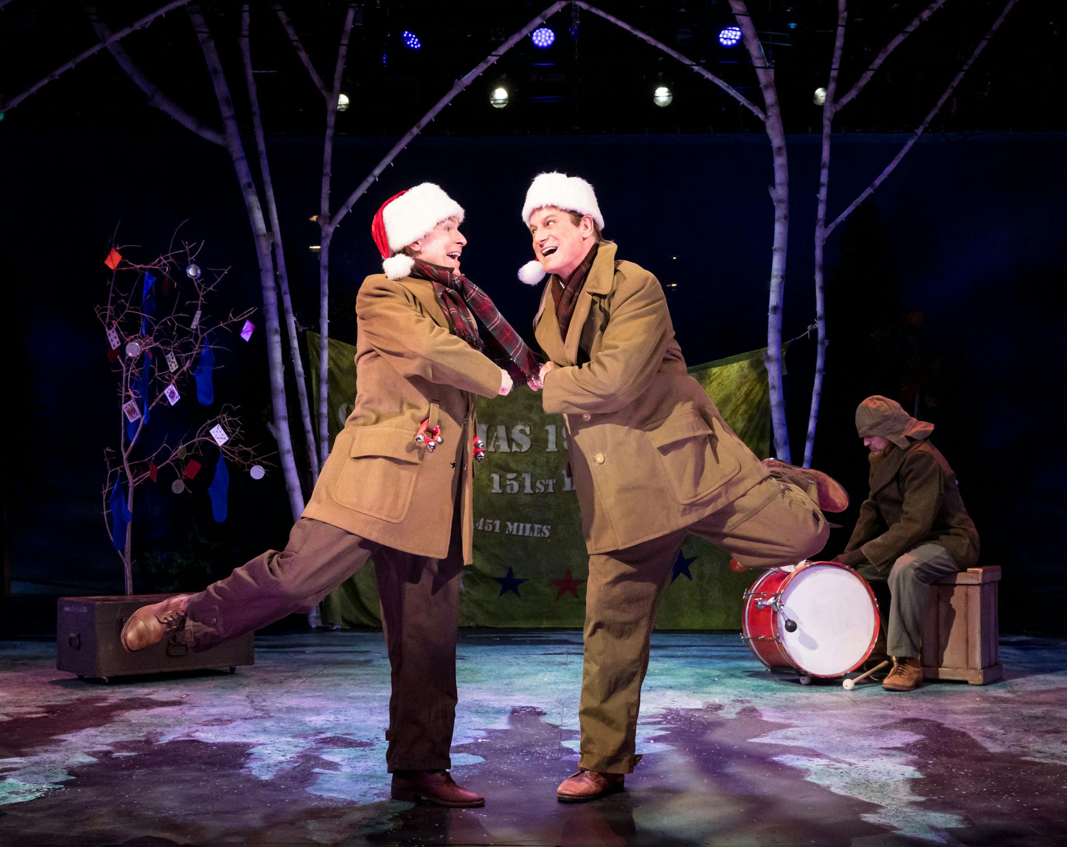 And working seamlessly with choreographer Tamara Kangas Erickson and Kust, Brindisi elicits elegant presentational performances from a cast led by Gruber and Vierling as old Army buddies Bob Wallace and Phil Davis. The two are aged up for the famous song-and-dance duo who’ve traveled to Vermont to help their old Army commander Gen. Henry Waverly (JoeNathan Thomas) after the inn he bought has fallen on hard times.