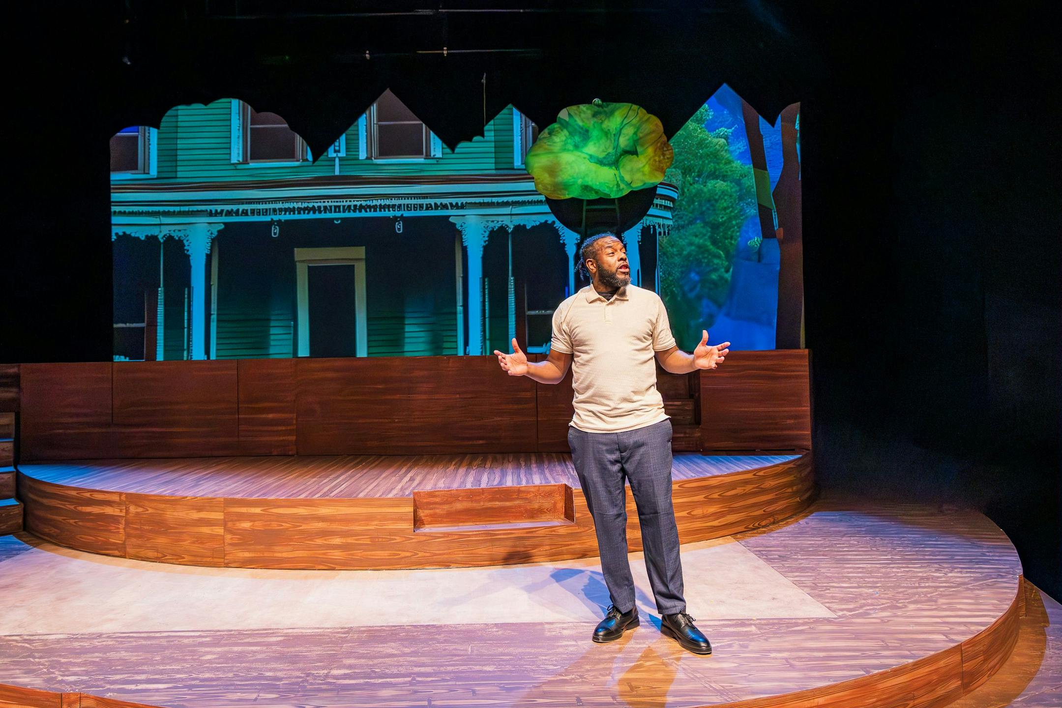 Another highlight is the work of Seitu Jones, whose scenic design incorporates his art, combined with projections by Kathy Maxwell, into the backdrops. Not surprisingly, the vibrantly colored paintings are gorgeous but, beyond that, they convey both a sense of St. Paul as home for Carter (whose son, Melvin Carter III, is the current mayor) and of the big, bright possibilities that awaited him.